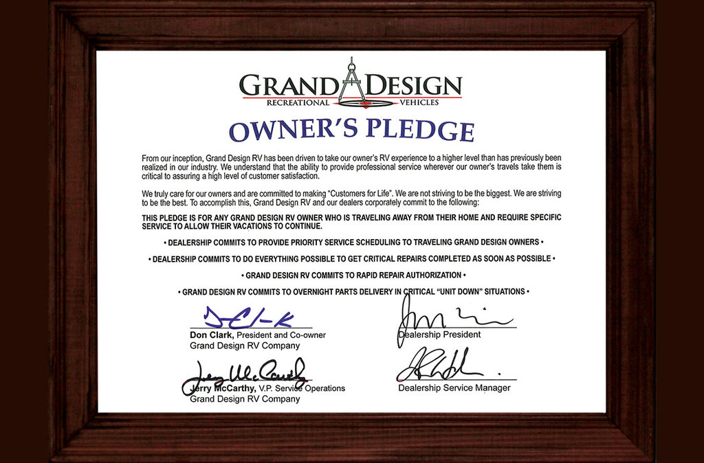 - RV CARE Customer Care Promises Card (Service Support & Discounts at over 200 Dealerships in N. America!)