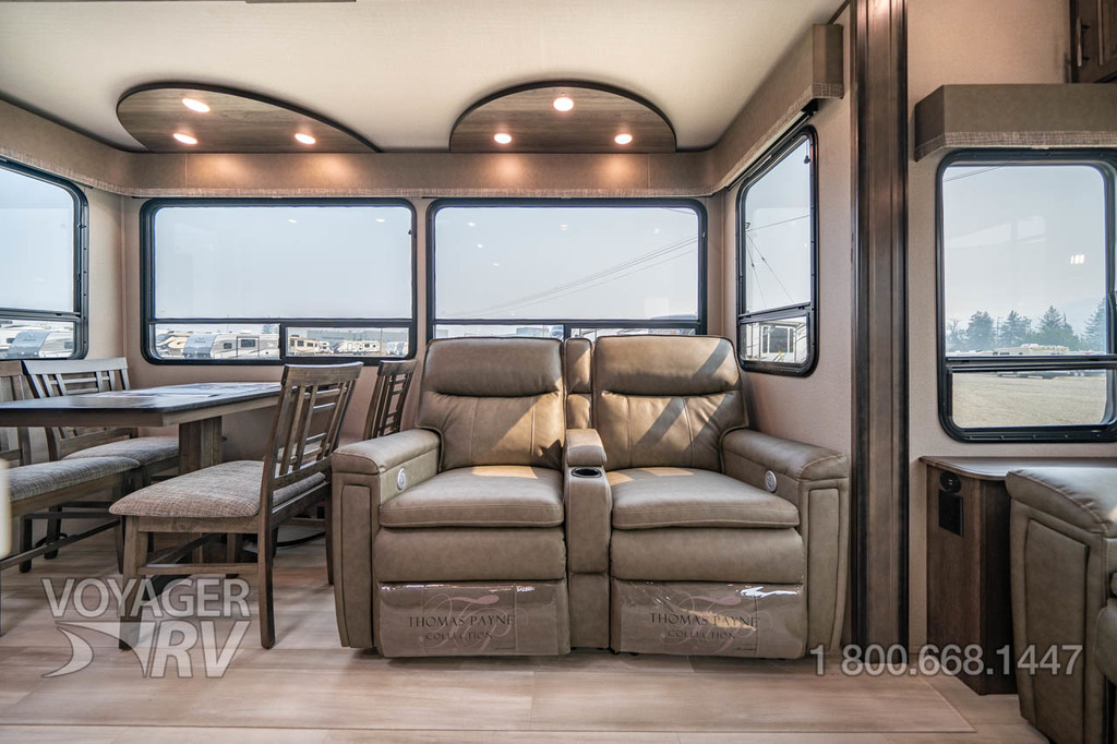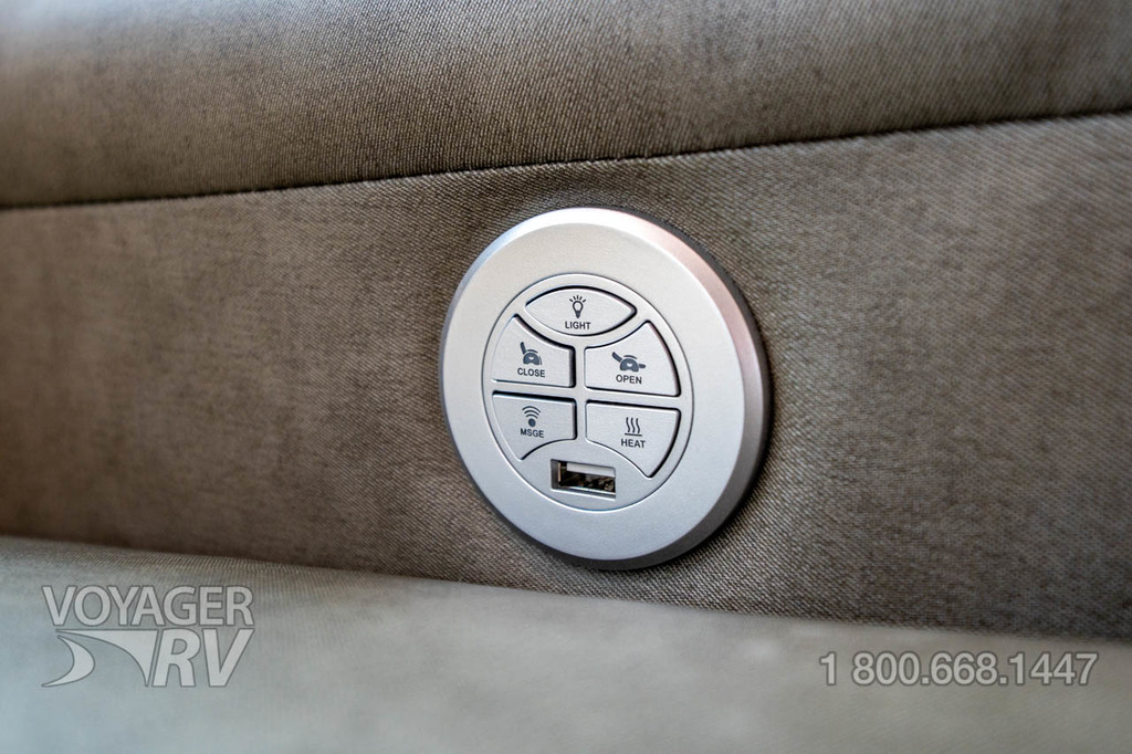 - Power Reclining Theatre Seating w/Swivel Tables(Includes LED Lighting, Heat and Massage Function)