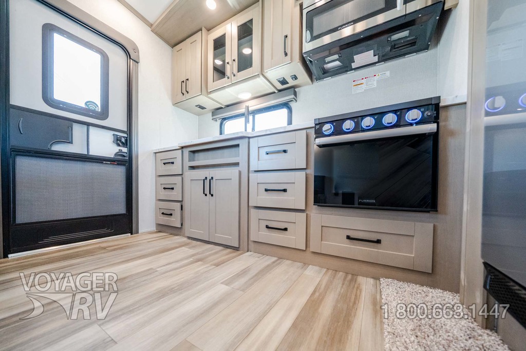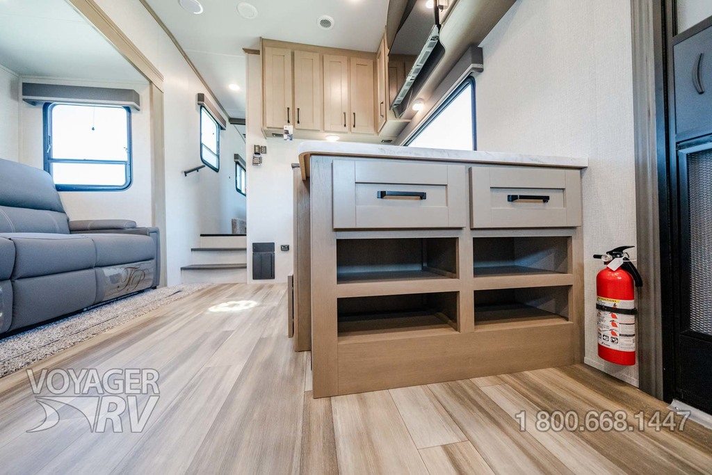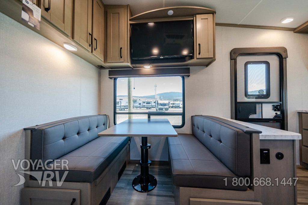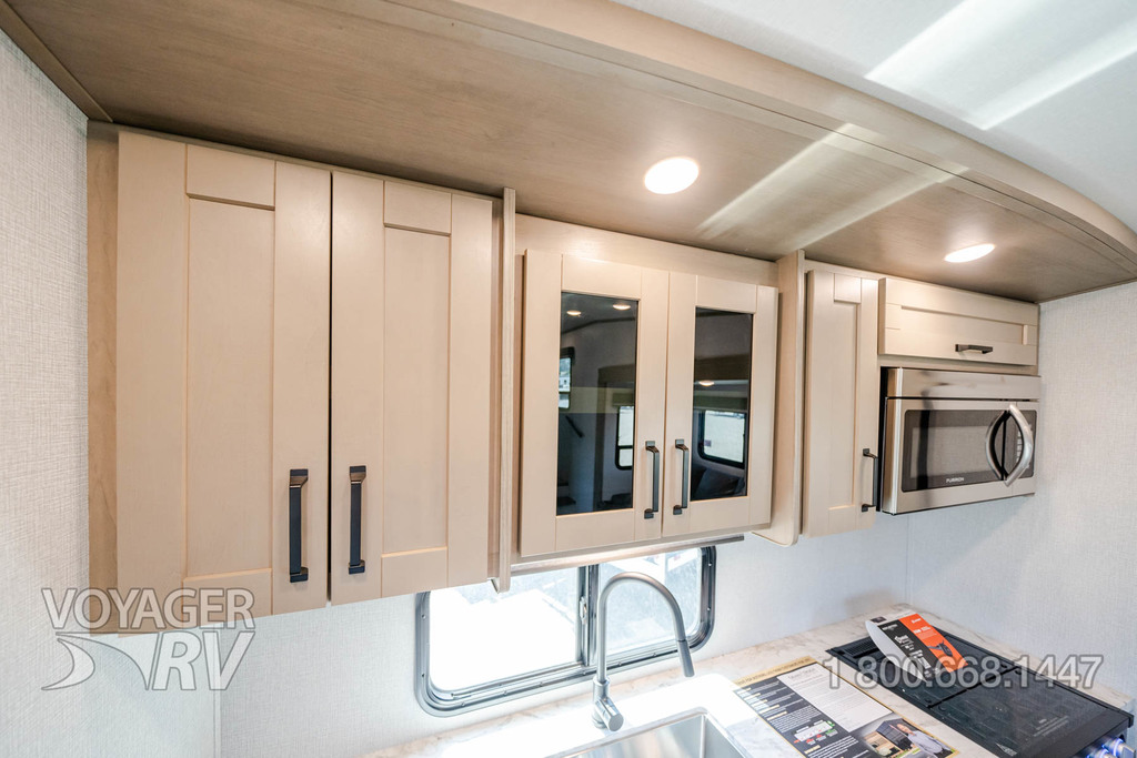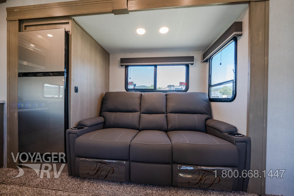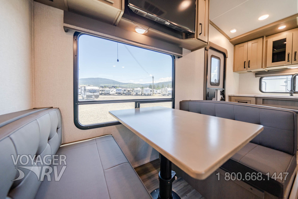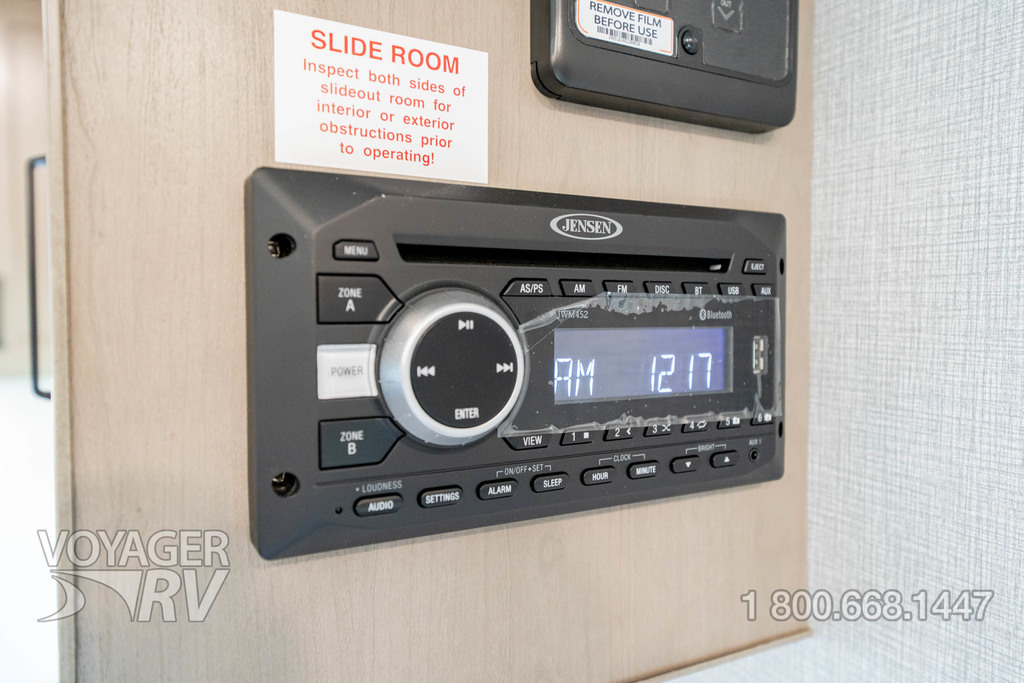 - Peace of Mind Package: Residential Cabinetry, Universal All-in-One Docking Station, Metal Slam Latch Front Cargo Doors, On Demand Water Heater, Porcelain Toilet w/Foot Flush, Hi Rise Faucet w/Pullout Sprayer, Aluminum Entry Steps, Wall Hugger Theater Seats, Painted Fiberglass Front Cap, Residential Booth Dinette, LP Quick Connect, Self-Adjusting Breaks, Roller Shades, 6' Coiled Break Away Cable, Deep Seated Stainless Steel Kitchen Sink, Walk on Roof, Aluminum Rims, Spare.