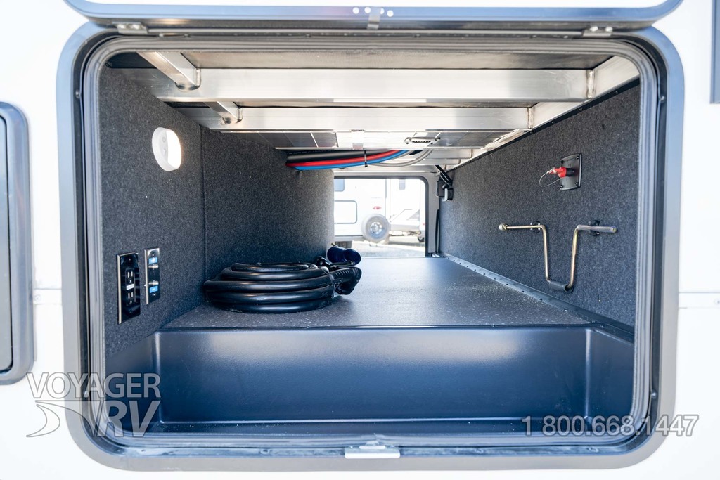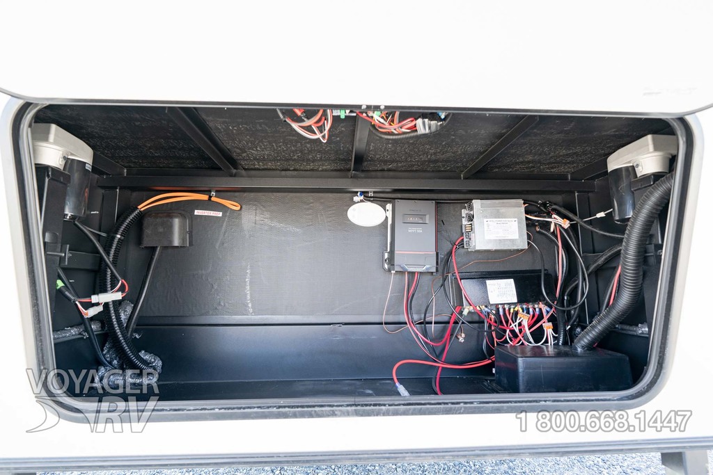 - Solar Package: 180W Roof Mounted Solar Panel, Roof Mounted Quick Connect Plugs, 50 Amp Charge Controller, 12V 10 Cube Refrigerator, Inverter Prep.