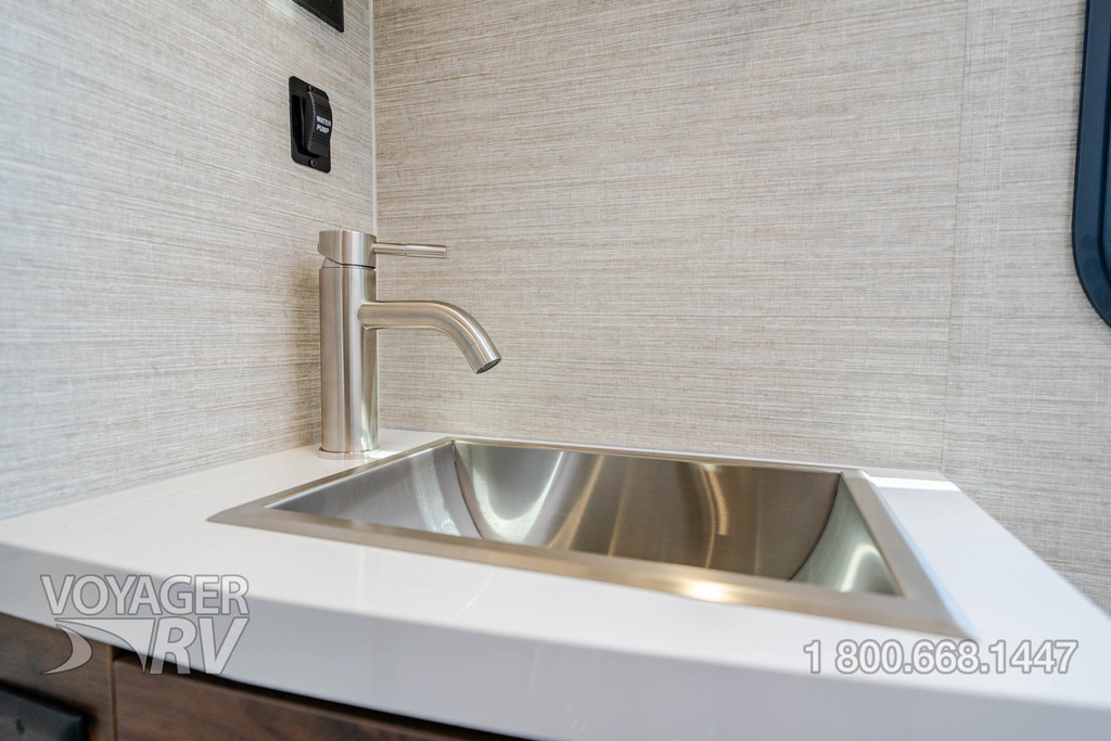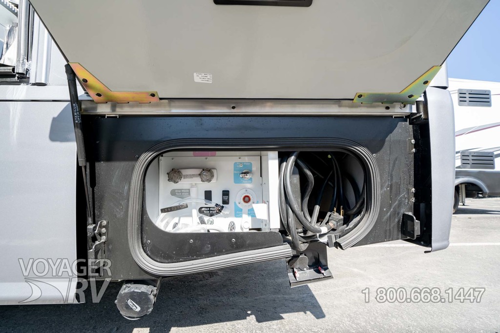 - Service Center — color-coded labels, pressurized city water hookup/tank diverter valve, drainage valves, exterior wash station w/lighted pump switch