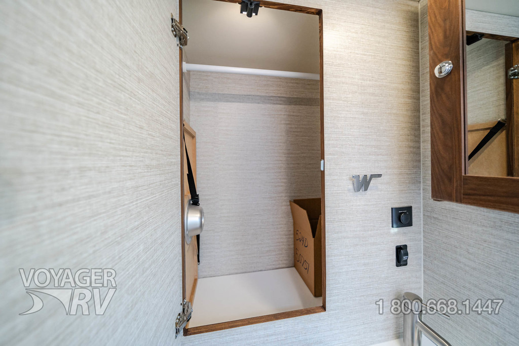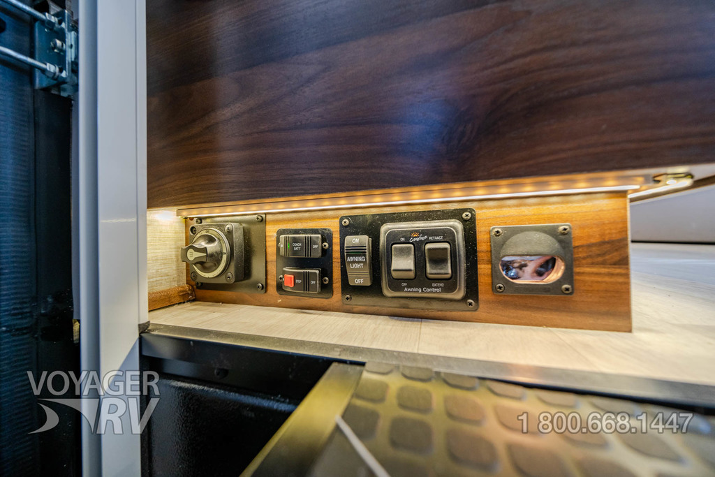 - Service Center light, cable TV input, 30-amp. power cord, portable satellite dish hookup, QuickPort service connection hatch
