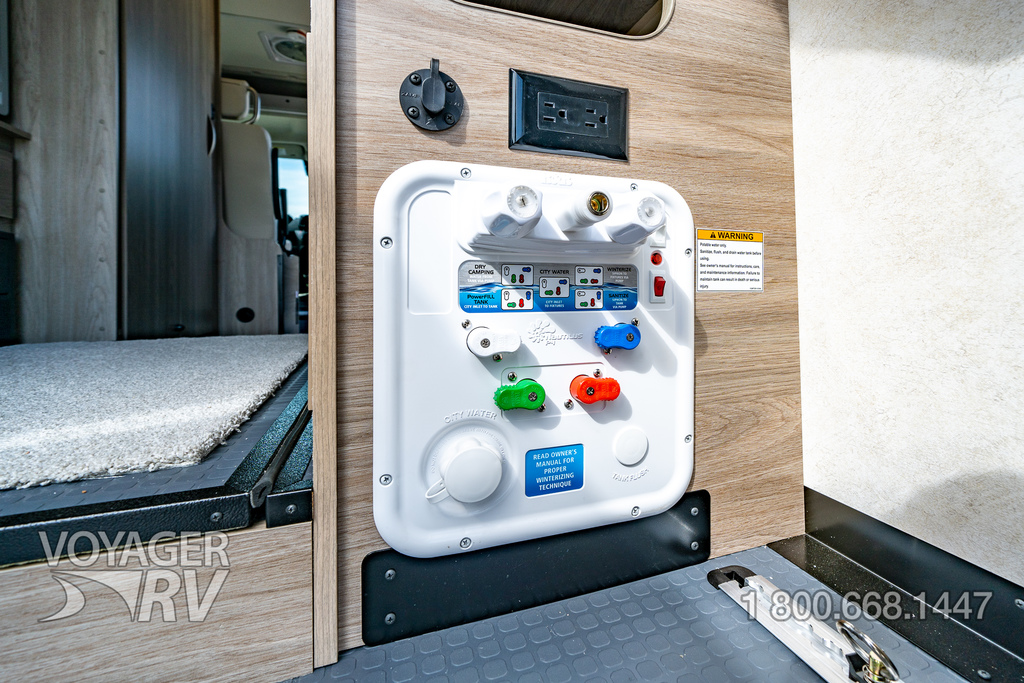 - Water center control panel includes all control valves, connection points and exterior wash station (located inside right rear door)