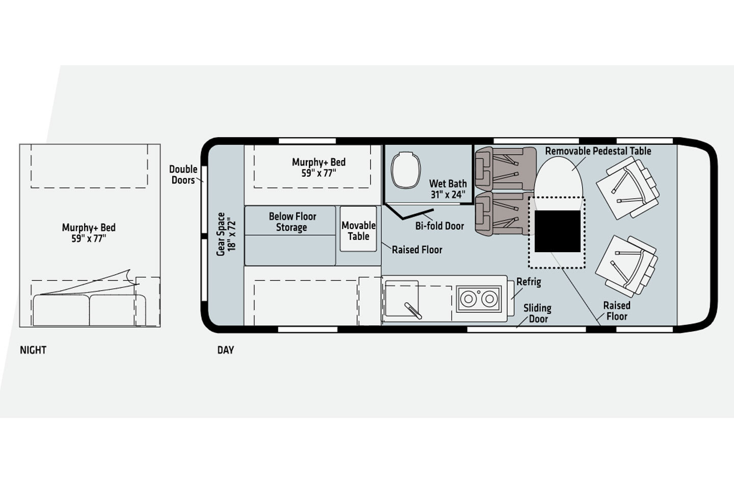 - Murphy+ bed w/mattress cover and access to below floor storage