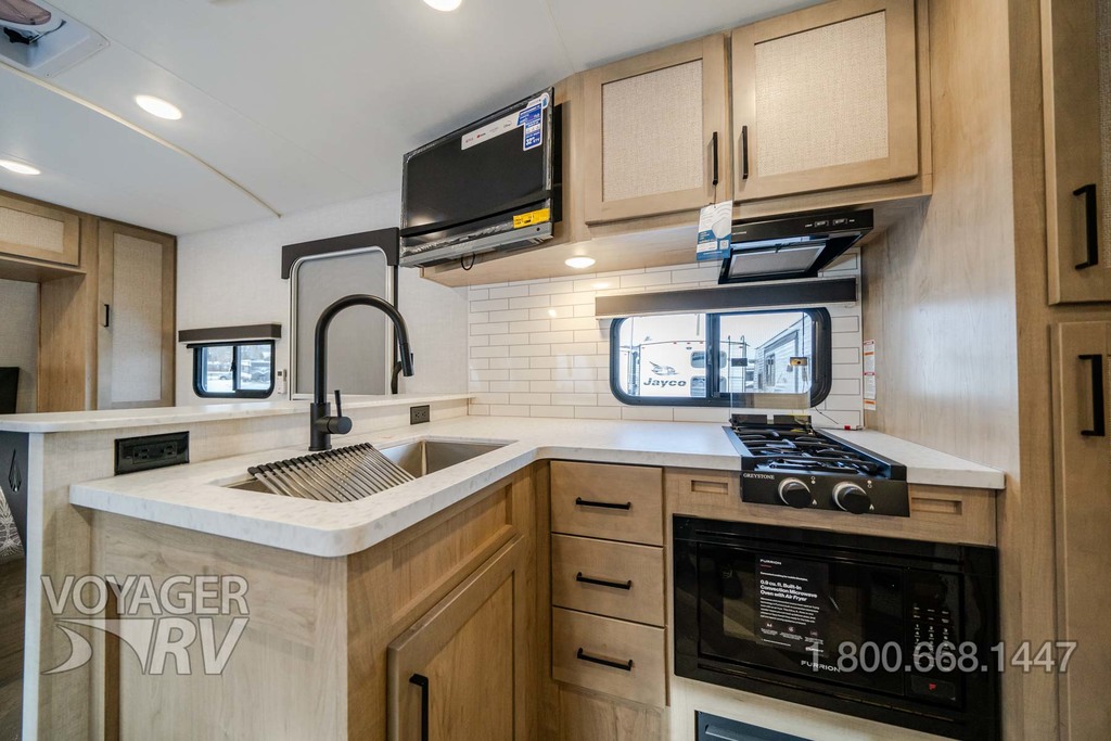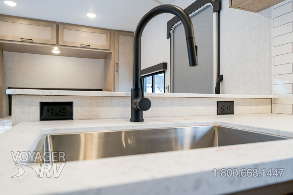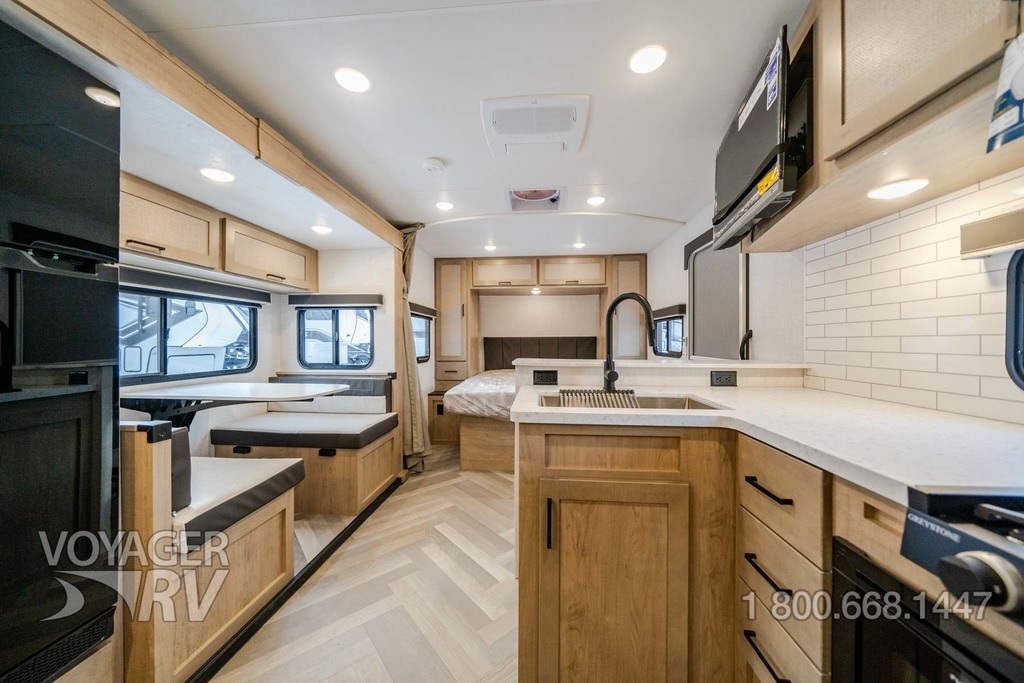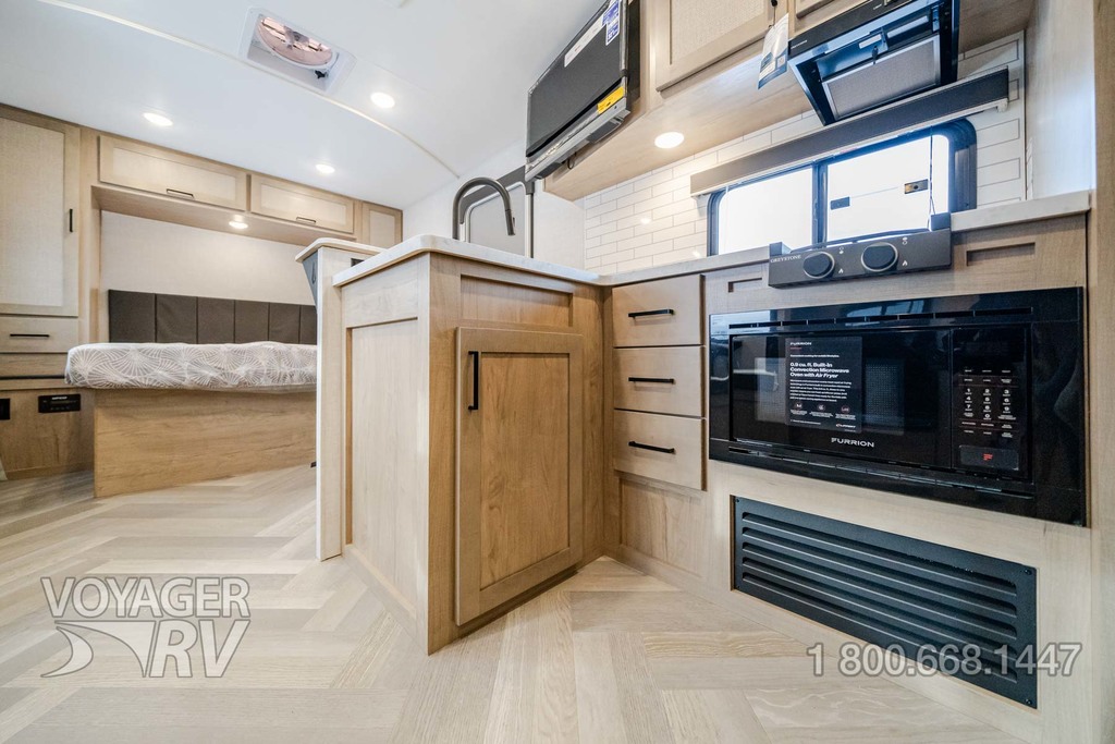 - Luxury Package: 18k BTU Max Cool A/C, Air Fryer Convection Microwave, 12V 10 Cu. Ft. Refrigerator, Stainless Steel Kitchen Sink, 60" x 80" Residential Queen Mattress, EmberLink Smart RV Control System, Tankless "On Demand" Water Heater, Porcelain Foot Flush Toilet, Electric Awning with Dimmable LED Light, Adjustable Solid Step Entry Stairs, HDTV w/ Built-In Bluetooth AV System, Dimmable LED Interior Lighting, Hardwood-Framed Doors with Hidden Hinges, Soft-Close Drawers, Roller Shades, USB-C Ports, Congoleum DiamondFlor "Carpetless" Interior.