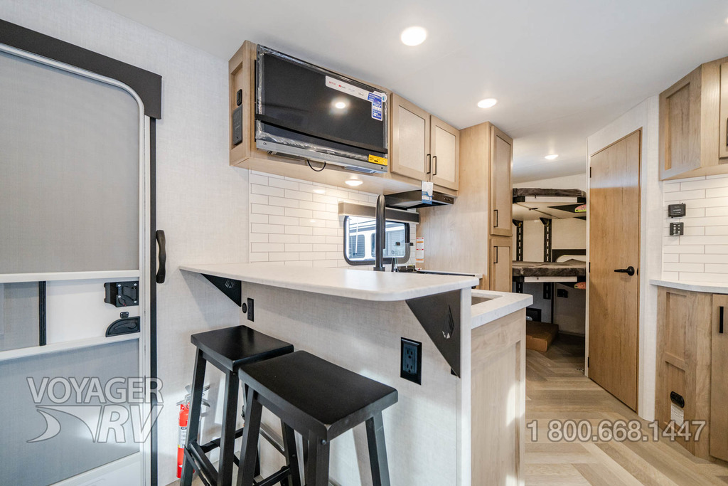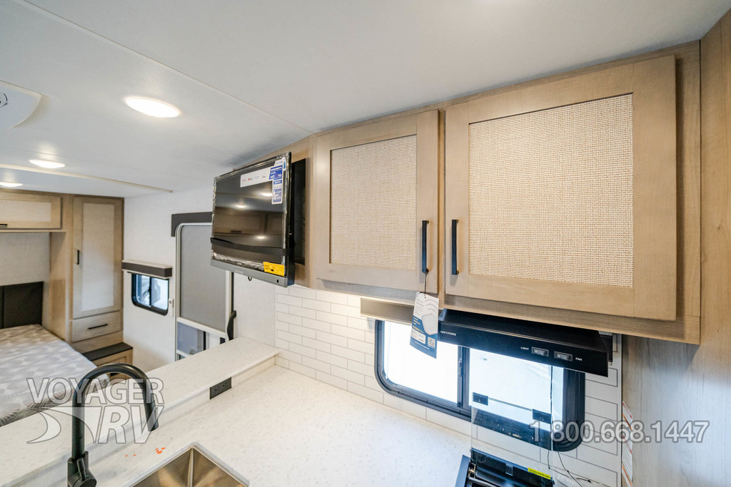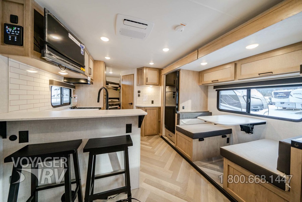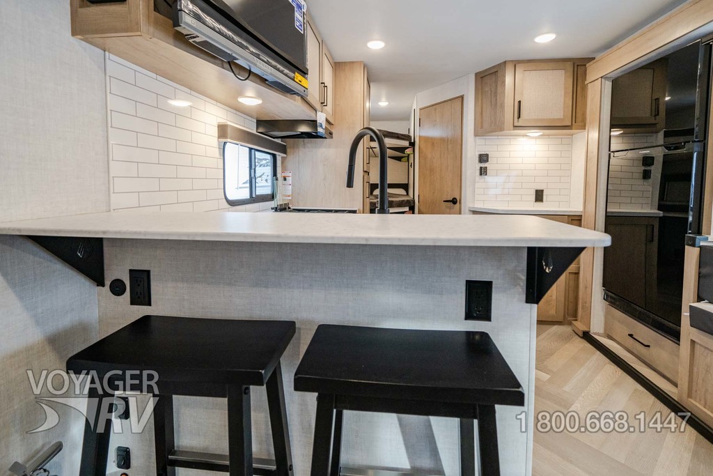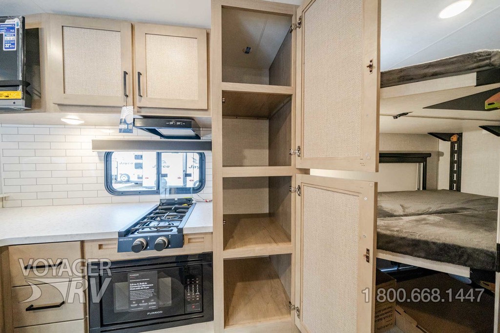 - Luxury Package: 18k BTU Max Cool A/C, Air Fryer Convection Microwave, 12V 10 Cu. Ft. Refrigerator, Stainless Steel Kitchen Sink, 60" x 80" Residential Queen Mattress, EmberLink Smart RV Control System, Tankless "On Demand" Water Heater, Porcelain Foot Flush Toilet, Electric Awning with Dimmable LED Light, Adjustable Solid Step Entry Stairs, HDTV w/ Built-In Bluetooth AV System, Dimmable LED Interior Lighting, Hardwood-Framed Doors with Hidden Hinges, Soft-Close Drawers, Roller Shades, USB-C Ports, Congoleum DiamondFlor "Carpetless" Interior.