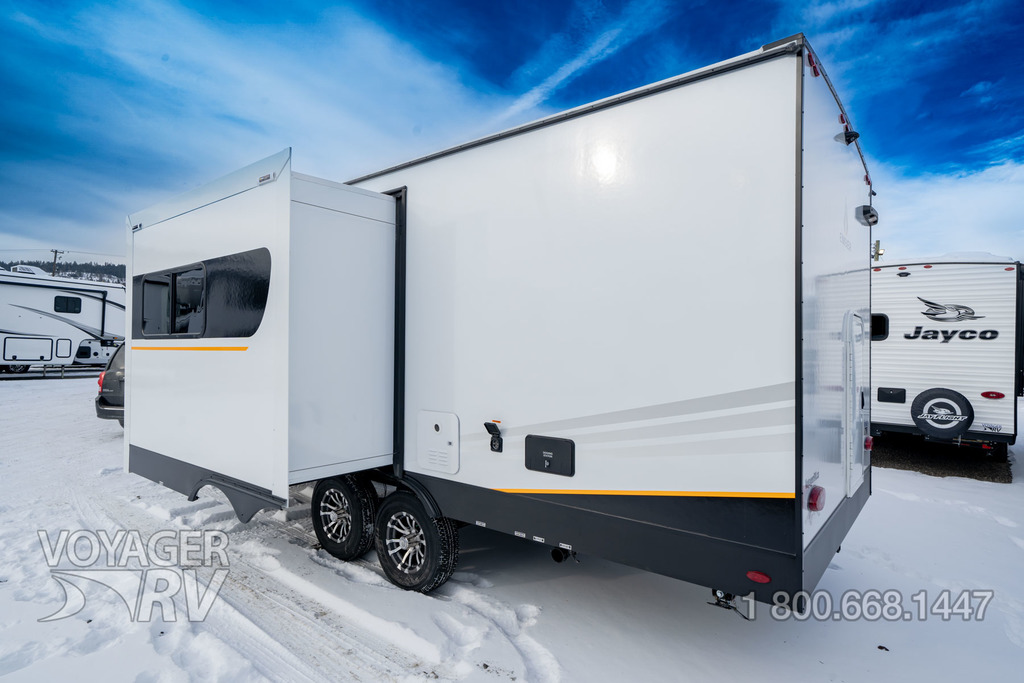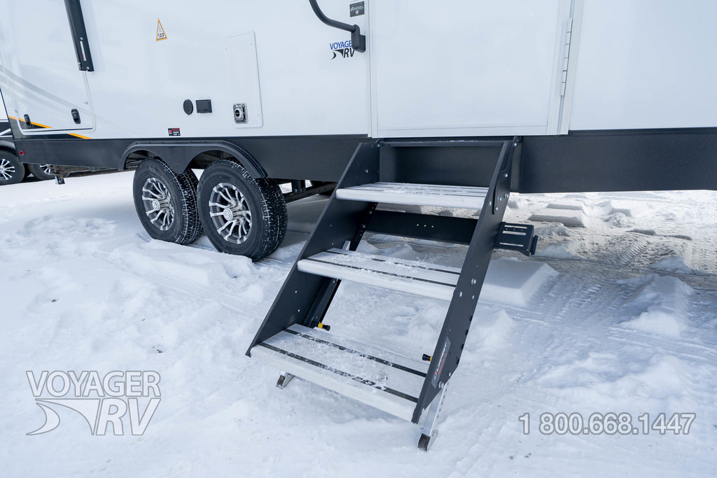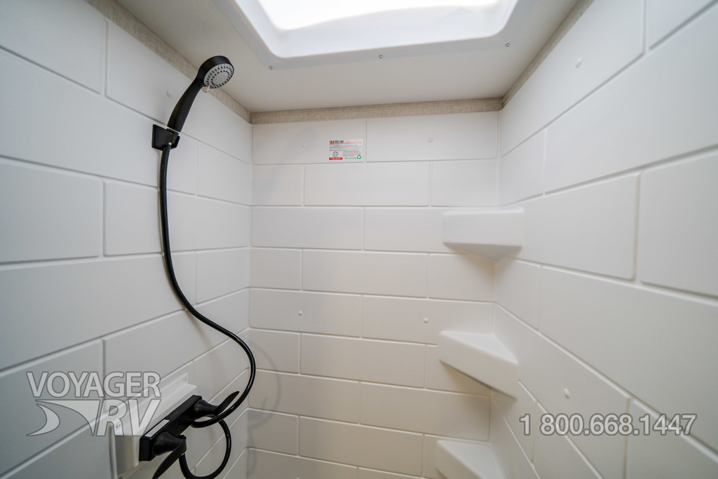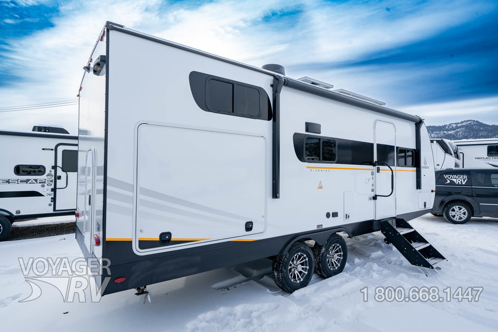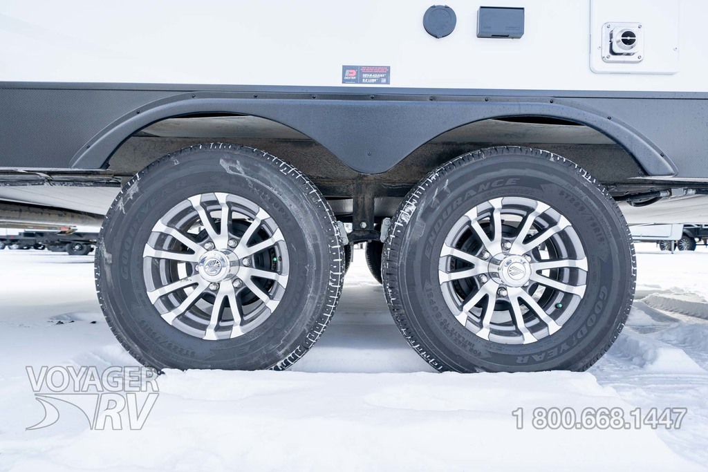 - Essentials Package: Aluminum Framed Construction, Laminated Azdel Onboard Composite Walls, 82" Ceiling Height, Goodyear Endurance Load Range 'E' Radial Tires with Custom Aluminum Rims, Dexter Axles with E-Z Lube Hubs and Forward Self-Adjusting Electric Brakes, QuickDrop Stabilizers, Electric Tongue Jack with 7-Way Cable Holder, Fully Walkable-Roof with Tufflex PVC Roofing (Lifetime Warranty), Repositionable/Telescoping Roof Ladder, 12V Multi-speed Fan with Remote, XL Fresh Water Tank, 12V Tank Heaters with Fully-Enclosed and Heated Radiant-Barrier Underbelly, Black Tank Flush, 360 Siphon Roof Vent Caps, Slam-Latch Baggage Doors, Keyed-Alike Locks, 2" Accessory Receiver (300lb Capacity), Sewer Hose Caddy, LP Quick Connect, Dual 20lb LP Tanks, Coiled Break-Away Cable.