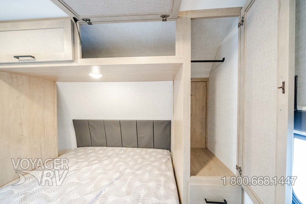 - Residential-Sized Queen Bed with USB-A, USB-C, and 120V Powered Cubbies with LED Lights on Each Side