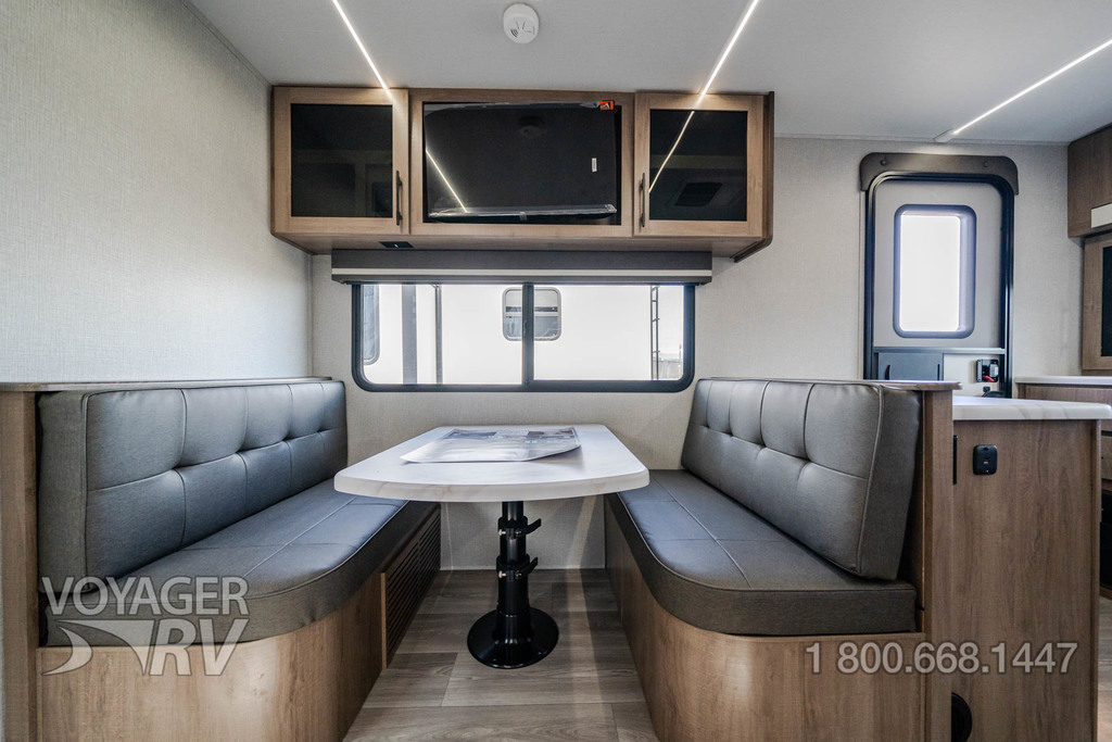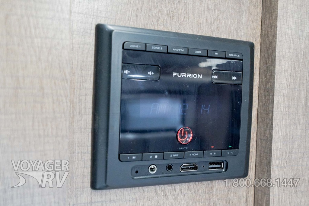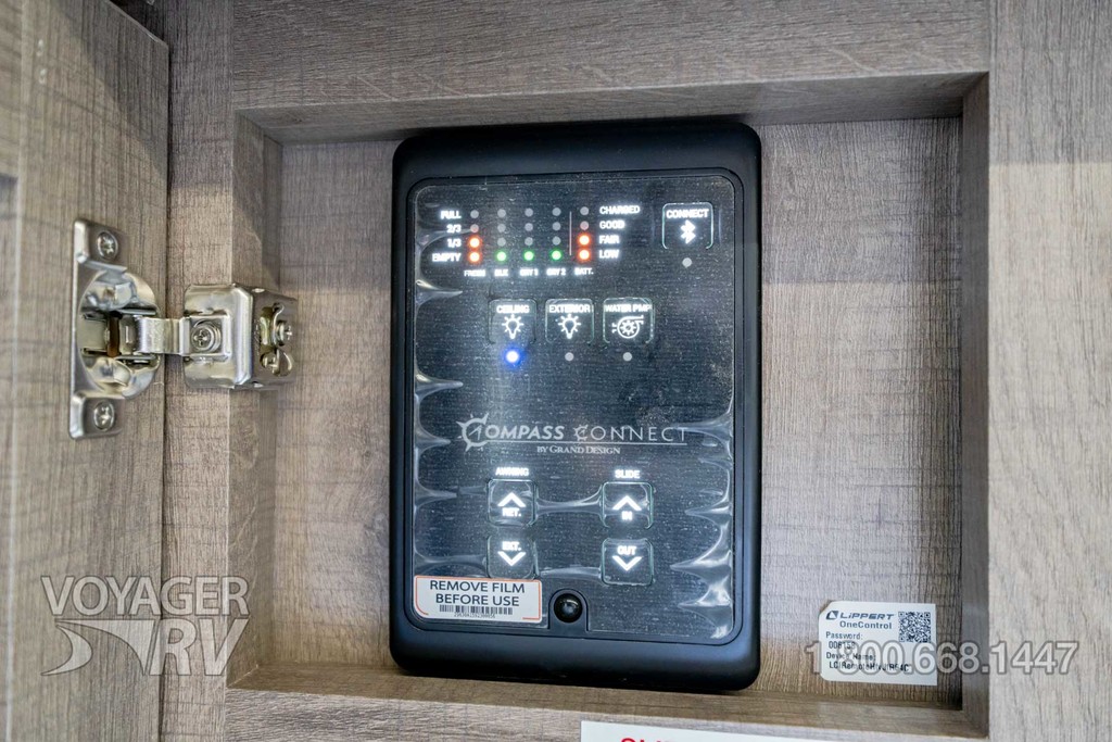 - Ultimate Power Package: Electric Awning with LED Light, LED Interior Lighting, Motion Sensor Entry and Pass Thru Lighting (LED), Bluetooth Stereo, High Definition LED Television, Detachable Marine Grade Power Cord, Ducted AC System, 30 AMP Service, Power Tongue Jack, Compass Connect, Tire Linc TPMS Prep, Exterior Cable Hookup.