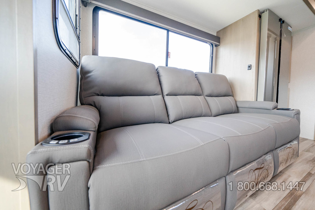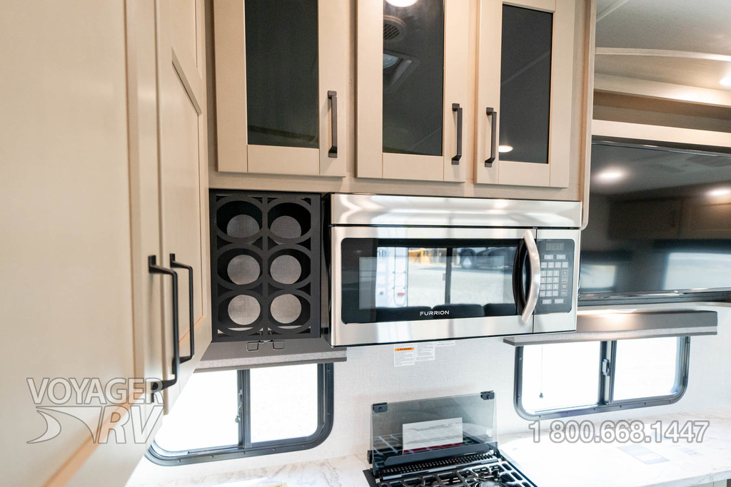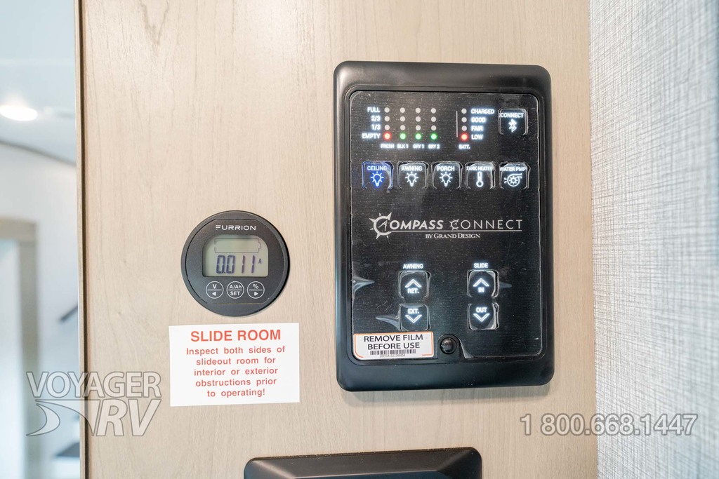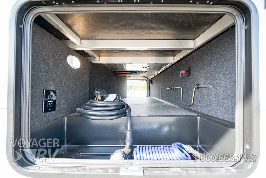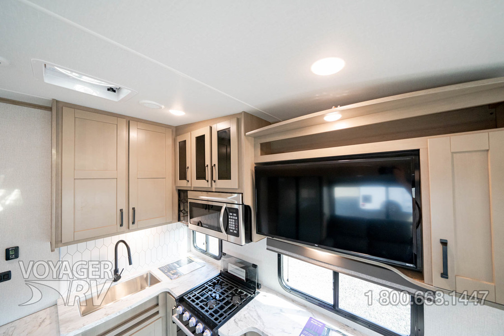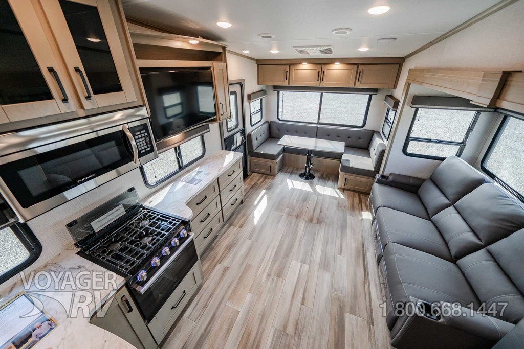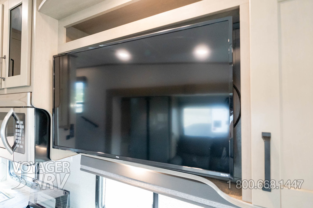 - Ultimate Power Package: 30" Stainless Steel Microwave, 15k Ducted Main A/C, "One-Touch" Electric LED Awning, Maxx Air Fan, AM/FM/CD/DVD HDMI Bluetooth Stereo, 50 AMP Service, Wired and Framed for 2nd A/C, High Definition LED TV, Detachable Power Cord with LED Light, "One-Touch" Automatic Leveling System, LED Interior Lighting, Motion Sensor Pass Thru Lighting(LED), Motion Sensor Entry Lighting (LED), Compass Connect, Tire Linc TPMS