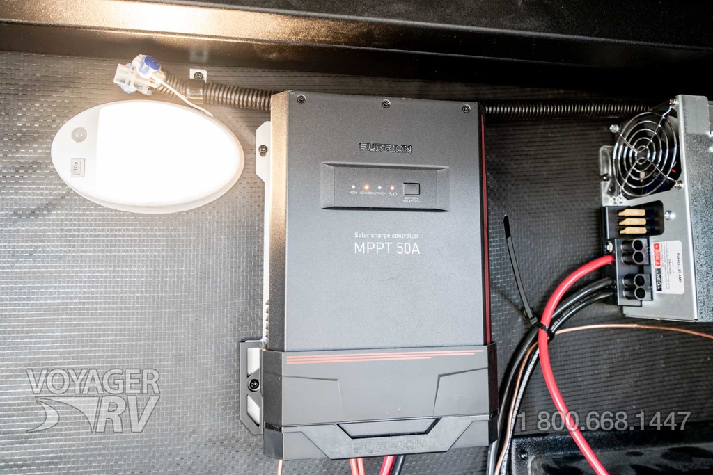 - Solar Package: 370 Watt Roof Mounted Solar Panel, Roof Mounted Quick Connect Plugs, 50 Amp Charge Controller, 12V 16 Cu Ft Refrigerator, Inverter Prep