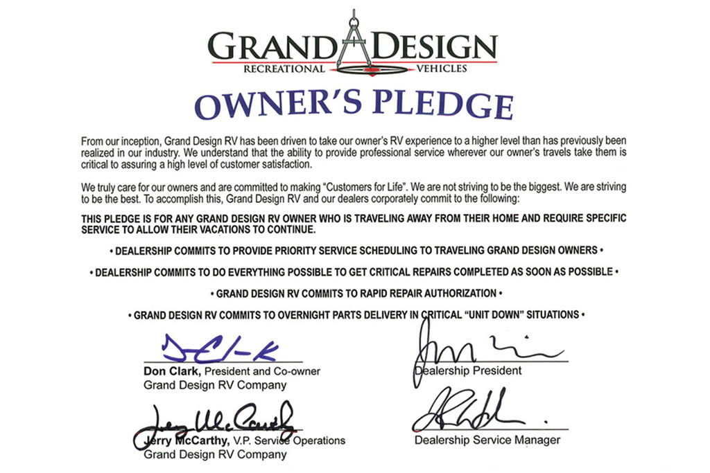- RV CARE Customer Care Promises Card (Service Support & Discounts at over 200 Dealerships in N. America!)