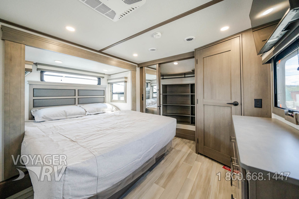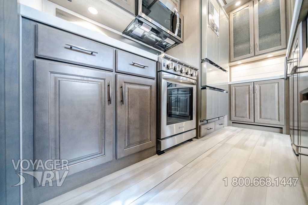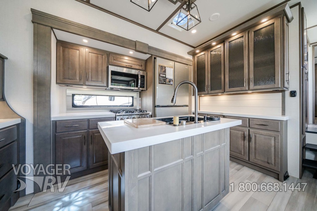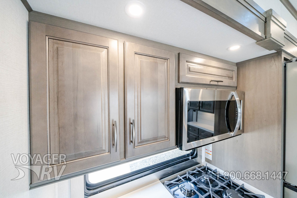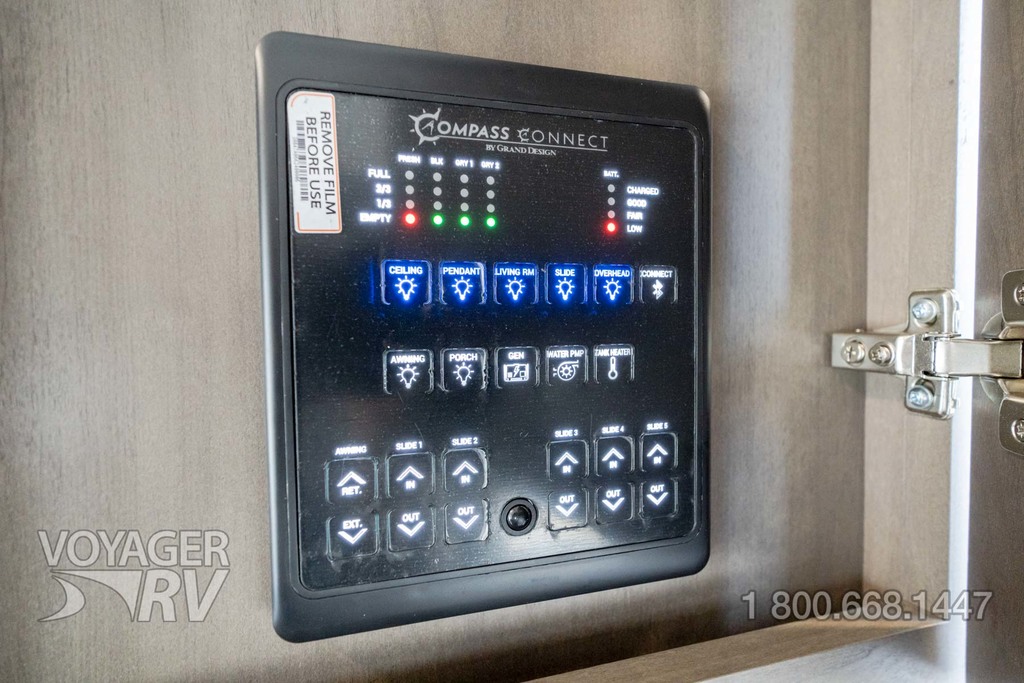 - Peace of Mind Package: Exterior Cable/Satellite Plug-In, Dresser w/ Slide-Top Hidden Storage, MORryde Pin Box, MORryde CRE3000 Suspension System, ABS Braking System, Spare Tire (Undermount), Power Patio Awning with Integrated LED Lighting, Sewer Hose Storage Area, Kitchen 12-Volt High Power MaxxAir Fan with Rain Sensor, Washer/Dryer Prep, Whole House Water Filtration System, Easy Clean Solid Surface Steps.