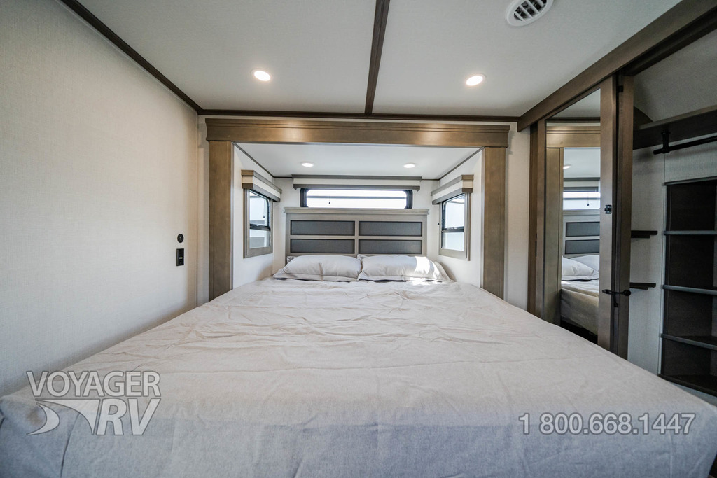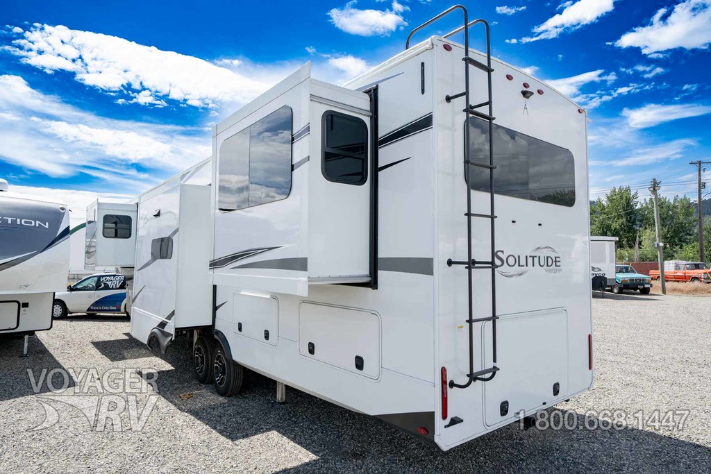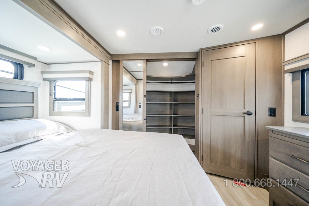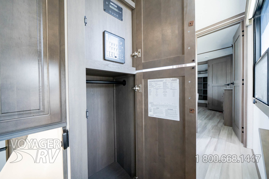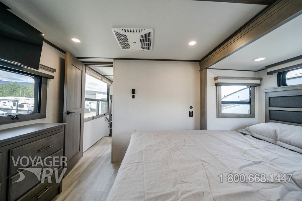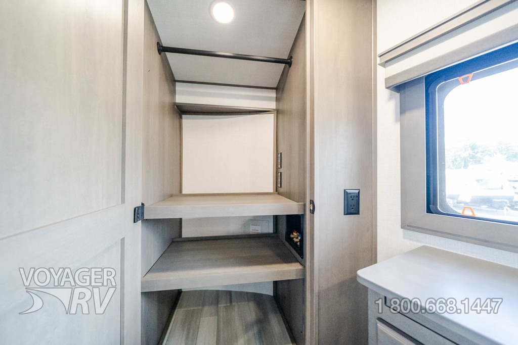- Peace of Mind Package: Exterior Cable/Satellite Plug-In, Dresser w/ Slide-Top Hidden Storage, MORryde Pin Box, MORryde CRE3000 Suspension System, ABS Braking System, Spare Tire (Undermount), Power Patio Awning with Integrated LED Lighting, Sewer Hose Storage Area, Kitchen 12-Volt High Power MaxxAir Fan with Rain Sensor, Washer/Dryer Prep, Whole House Water Filtration System, Easy Clean Solid Surface Steps.