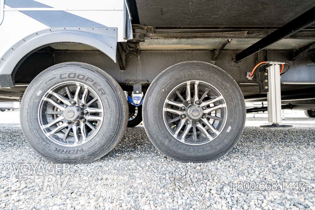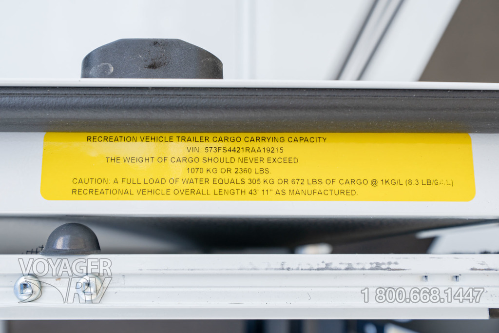- Max Built Construction Package: Satellite/Cable Prep, 101" Widebody Construction, Heavy Duty 8,000 lb. Axles, H- Rated Aluminum Wheels, High-Gloss Gel Coat Exterior Sidewalls, Color Matched Fender Skirt, 5-Side Aluminum Cage Construction, Walk-On Roof, TPO Roof Covering, Slam-Latch Baggage Doors, Magnetic Entry and Baggage Door Catches, Entry Door w/Privacy Glass, Frameless Tinted Windows, Painted Gel Coat Fiberglass Front Cap, Exterior Security Light, Roof Ladder, 50 Amp Service w/Detachable Power Cord, 12-Volt Battery Disconnect.