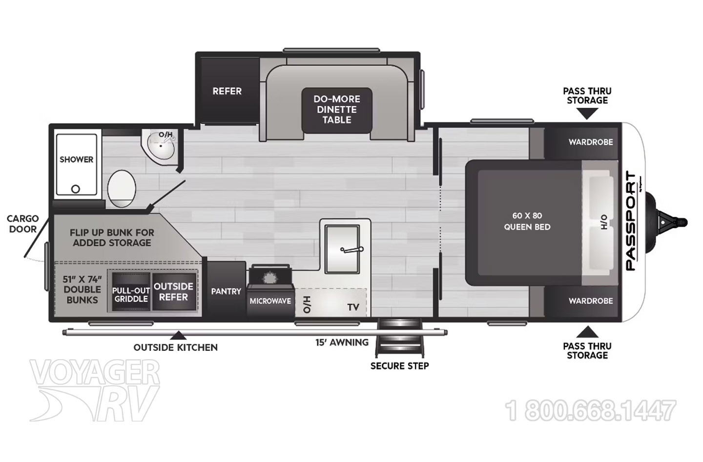 - Extra large 30" X 20" baggage doors w/ motion sensor lighting in pass-thru
