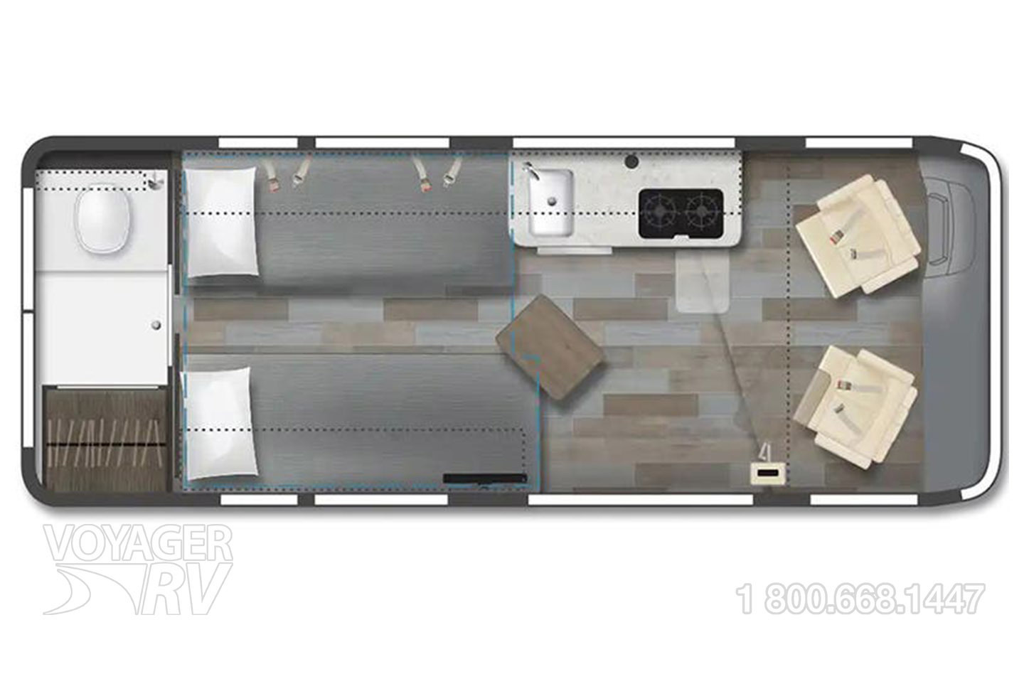 - Twin beds w/WinnSleep system and storage below passenger side