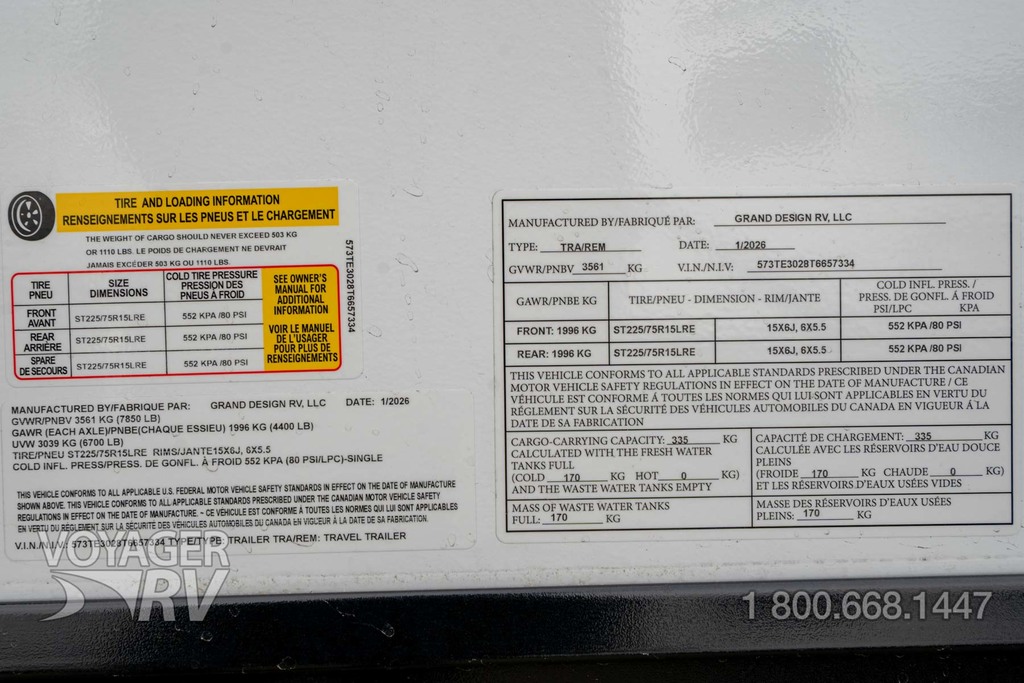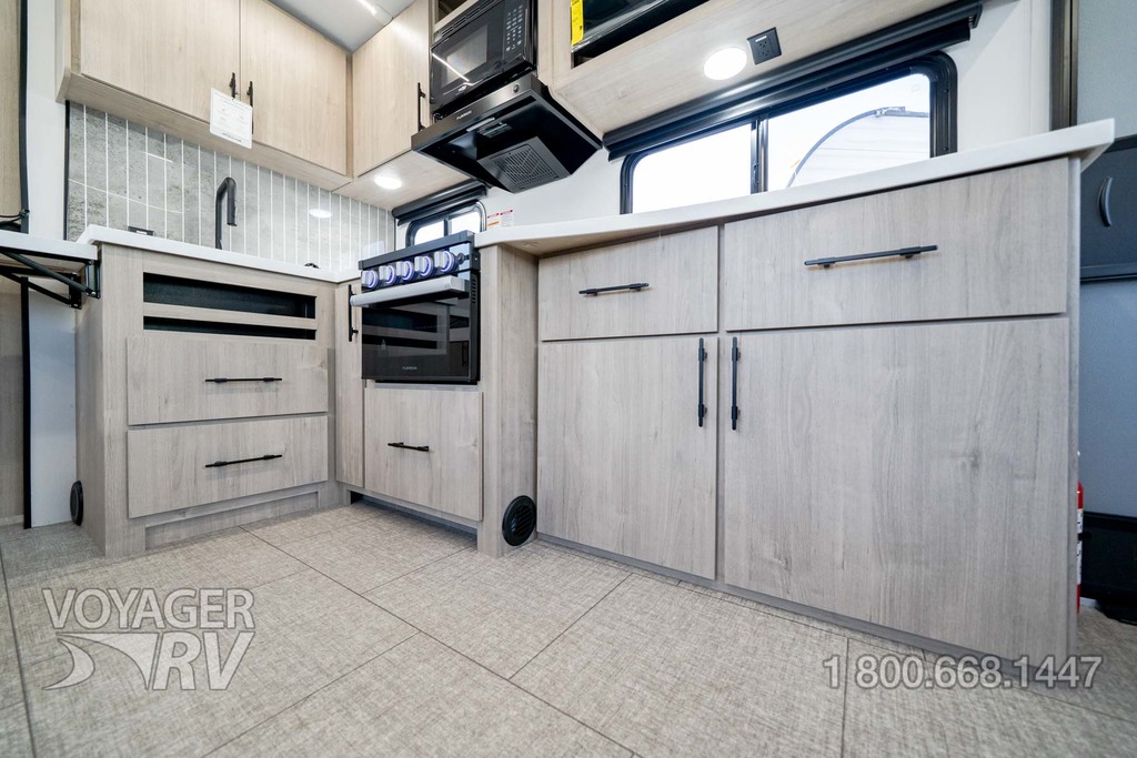 - Peace of Mind Package: Drop Frame Front Pass Thru Storage, Solid-Step Entry Step, Walk on Roof, Universal Docking Station, On-Demand Tankless Water Heater, Black Tank Flush, Aluminum Rims, Spare Tire & Carrier, Front Rock Guard, Fiberglass Front Cap, Metal Slam Latch Cargo Doors, 6’ Coiled Break Away Cable, Accessory Hitch, Sewer Hose Carrier, Tuff-Ply Pass Thru Flooring, Dual LP Tank Monitors, CRE-3000 Suspension System Paired w/Wet Bolts and Bronze Bushings, Hot/Cold Exterior Spray Port, Oversized Holding Tanks, Rear Ladder, LP Quick Connect, Key-a-Like Baggage and Entry Doors, Entry Door Privacy Shade, 7-Way Plug Chassis Bracket, Master Bed Reading Lights, Strutted Bed Base, Sliding Laundry Tray, Retractable Shower Door, Soft Close Toilet Lids, Undermounted Kitchen and Lav Sinks, Residential Pulldown Spray Faucet, Residential Cabinetry and Hardware, Soft Close Hidden Hinges, Magnetic Cabinet Door & Drawer Latches, Radius Interior Ceiling, Premium Window Treatments, Solid Surface Counter Tops, Intergraded Soap Dispenser, Rollup Kitchen Sink Cover, 3-Burner Range w/Low Profile Power Vent, Pots/Pans Drawer w/Intergraded Peg Organizers, Carpetless Floors, Paper Towel Holder, Dedicated Trash Compartment, Enhance Plumbing System.