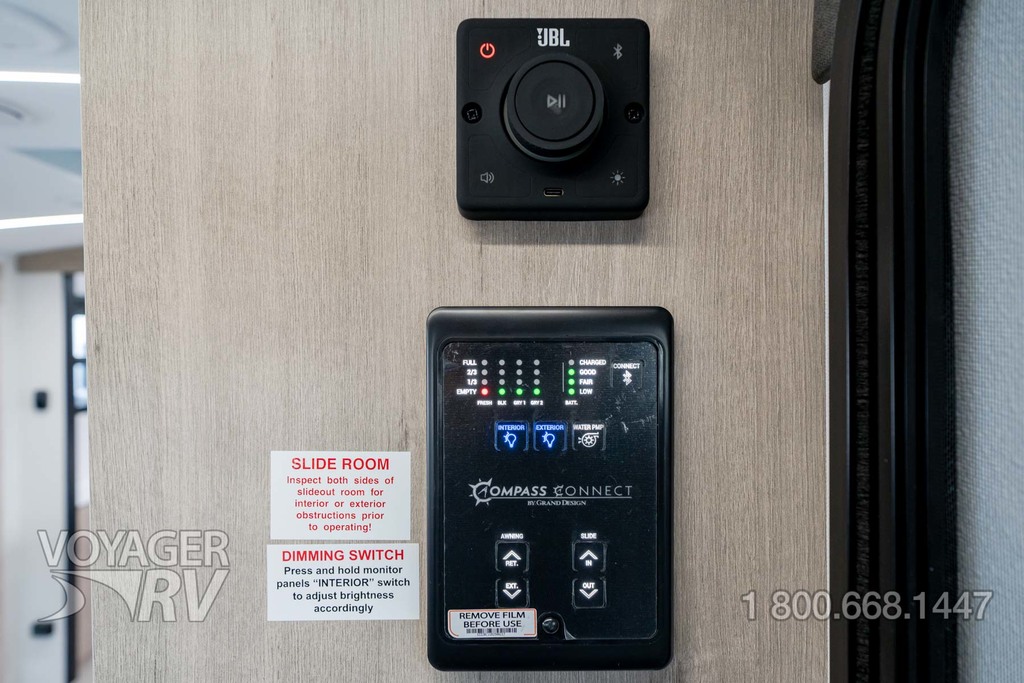 - Ultimate Power Package: Adjustable Power Awning w/LED Lights, LED Interior Lighting w/Dimming, 50 AMP Service, Hi Definition Smart LED TV, Detachable Power Cord, Ducted Main AC, Motion Sensor LED Night Light, Power Tongue Jack, Exterior Cable Hookup, Compass Connect, Tire Linc TPMS Prep, JBL Bluetooth Audio System, Inverter Prep, Backup Camera Prep, Pass-Thru Motion LED Light.