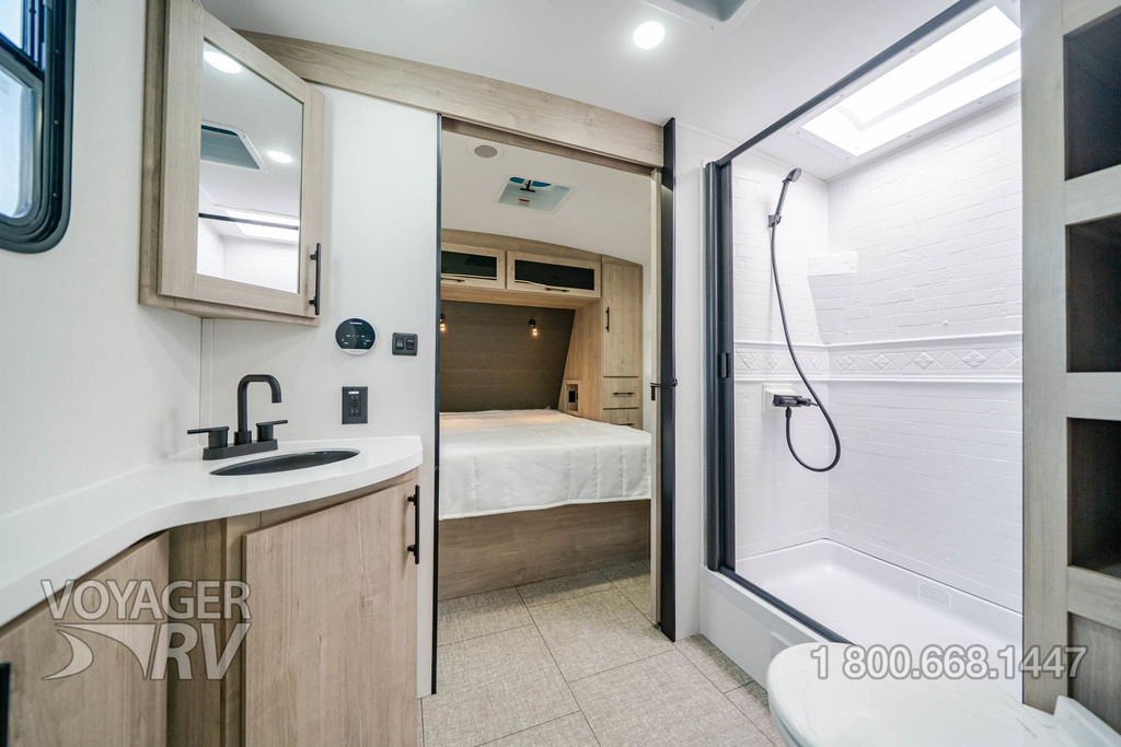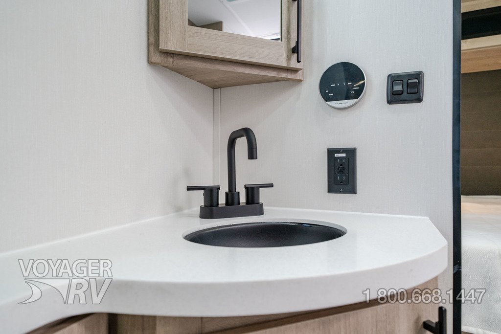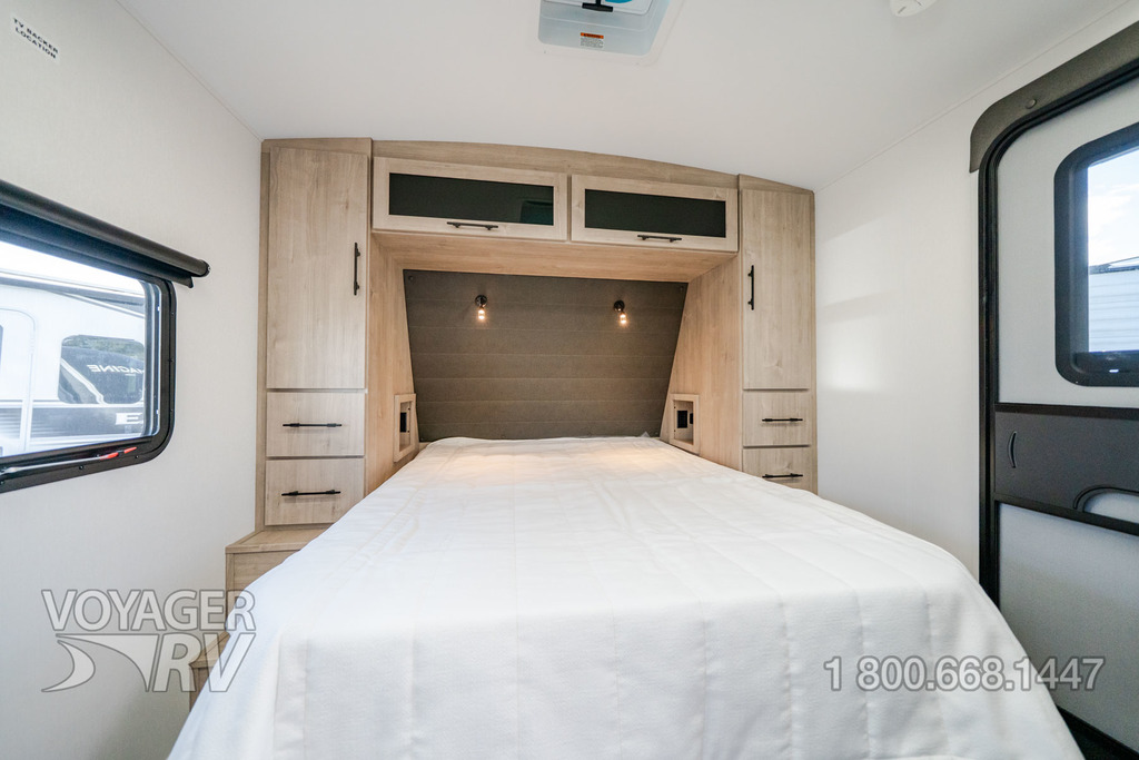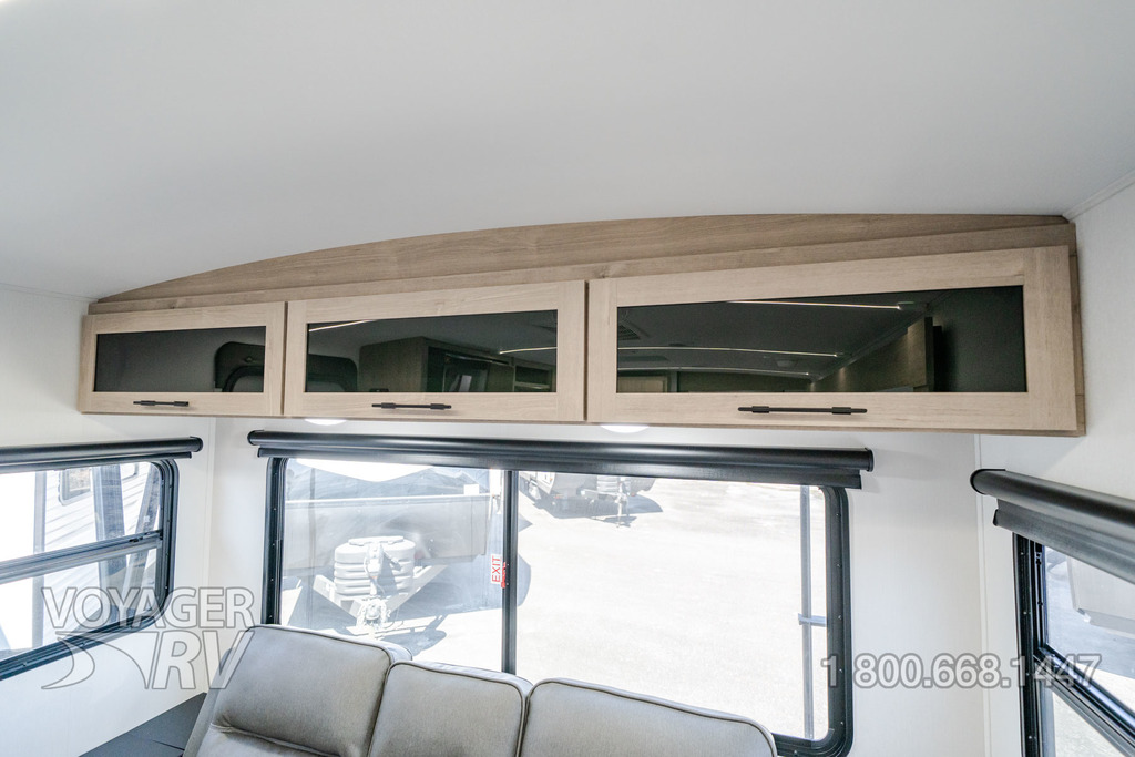 - Peace of Mind Package: Drop Frame Front Pass Thru Storage, Solid-Step Entry Step, Walk on Roof, Universal Docking Station, On-Demand Tankless Water Heater, Black Tank Flush, Aluminum Rims, Spare Tire & Carrier, Front Rock Guard, Fiberglass Front Cap, Metal Slam Latch Cargo Doors, 6’ Coiled Break Away Cable, Accessory Hitch, Sewer Hose Carrier, Tuff-Ply Pass Thru Flooring, Dual LP Tank Monitors, CRE-3000 Suspension System Paired w/Wet Bolts and Bronze Bushings, Hot/Cold Exterior Spray Port, Oversized Holding Tanks, Rear Ladder, LP Quick Connect, Key-a-Like Baggage and Entry Doors, Entry Door Privacy Shade, 7-Way Plug Chassis Bracket, Master Bed Reading Lights, Strutted Bed Base, Sliding Laundry Tray, Retractable Shower Door, Soft Close Toilet Lids, Undermounted Kitchen and Lav Sinks, Residential Pulldown Spray Faucet, Residential Cabinetry and Hardware, Soft Close Hidden Hinges, Magnetic Cabinet Door & Drawer Latches, Radius Interior Ceiling, Premium Window Treatments, Solid Surface Counter Tops, Intergraded Soap Dispenser, Rollup Kitchen Sink Cover, 3-Burner Range w/Low Profile Power Vent, Pots/Pans Drawer w/Intergraded Peg Organizers, Carpetless Floors, Paper Towel Holder, Dedicated Trash Compartment, Enhance Plumbing System.