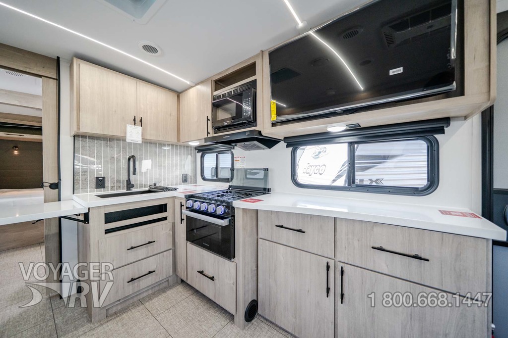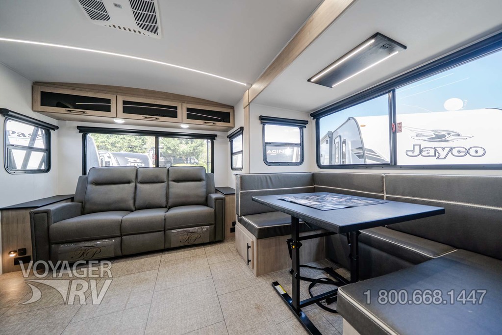 - Ultimate Power Package: Adjustable Power Awning w/LED Lights, LED Interior Lighting w/Dimming, 50 AMP Service, Hi Definition Smart LED TV, Detachable Power Cord, Ducted Main AC, Motion Sensor LED Night Light, Power Tongue Jack, Exterior Cable Hookup, Compass Connect, Tire Linc TPMS Prep, JBL Bluetooth Audio System, Inverter Prep, Backup Camera Prep, Pass-Thru Motion LED Light.