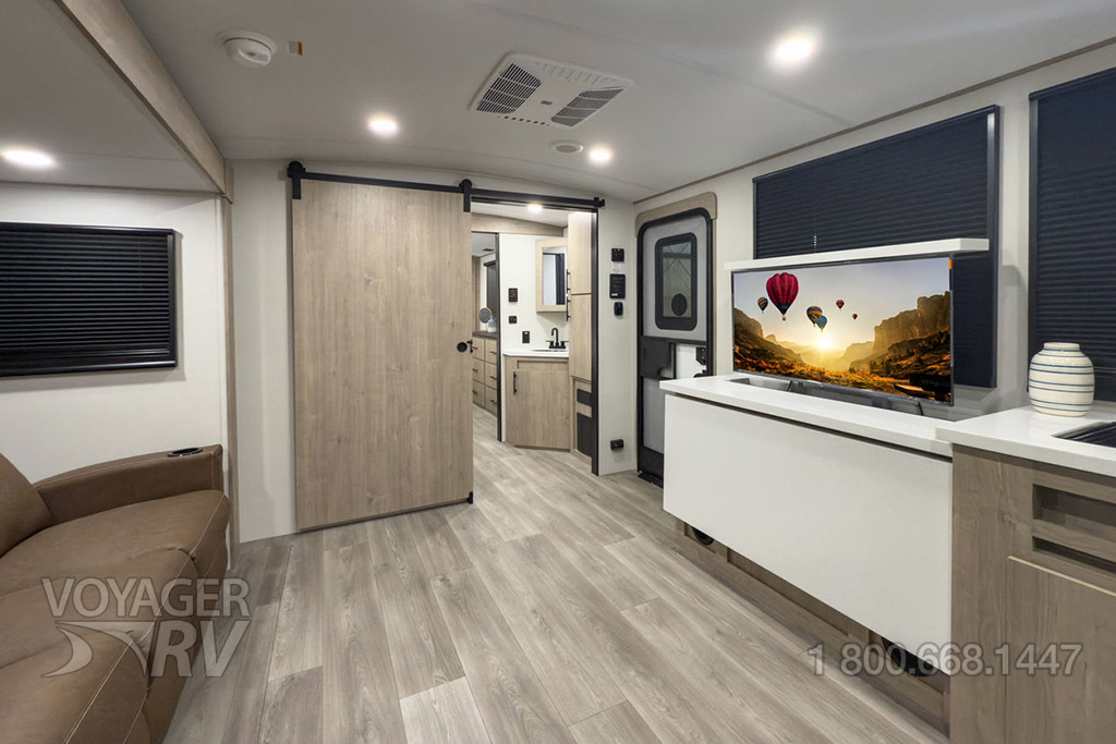 - Ultimate Power Package: Adjustable Power Awning w/LED Lights, LED Interior Lighting w/Dimming, 50 AMP Service, Hi Definition Smart LED TV, Detachable Power Cord, Ducted Main AC, Motion Sensor LED Night Light, Power Tongue Jack, Exterior Cable Hookup, Compass Connect, Tire Linc TPMS Prep, JBL Bluetooth Audio System, Inverter Prep, Backup Camera Prep, Pass-Thru Motion LED Light.