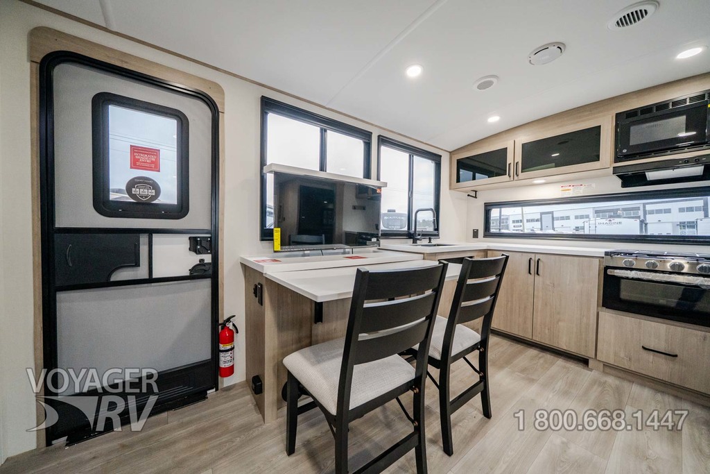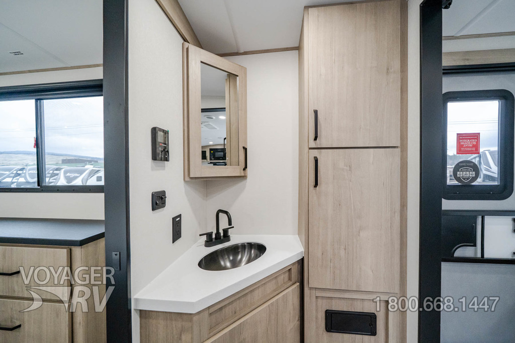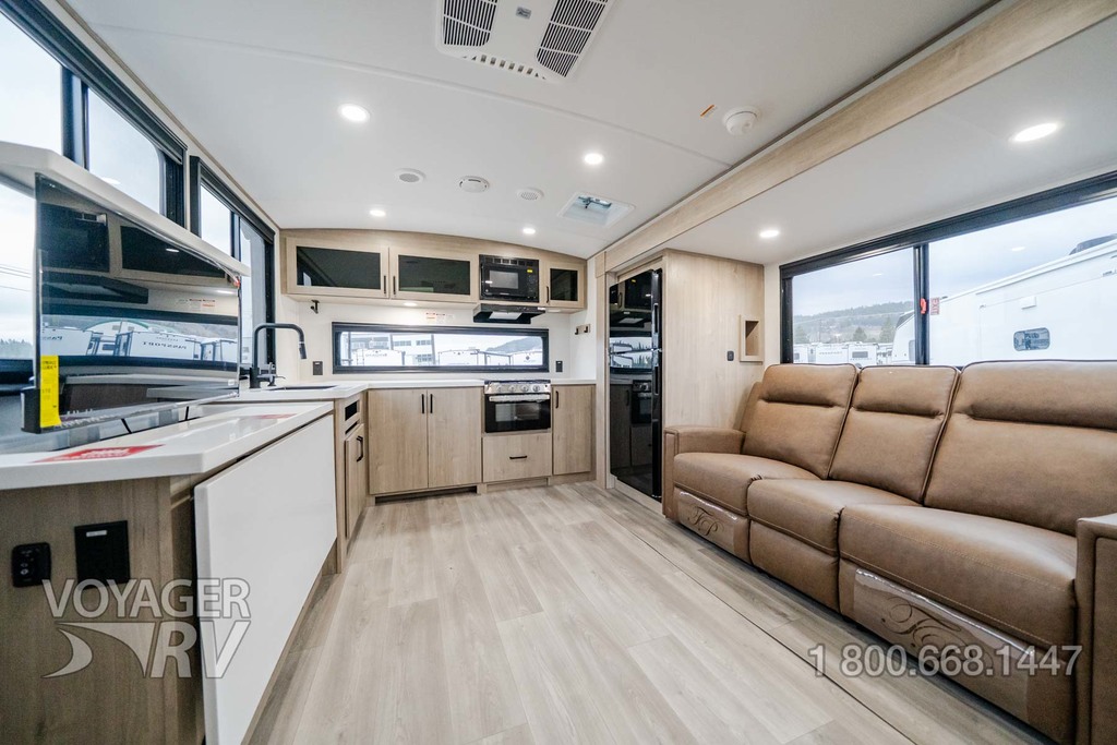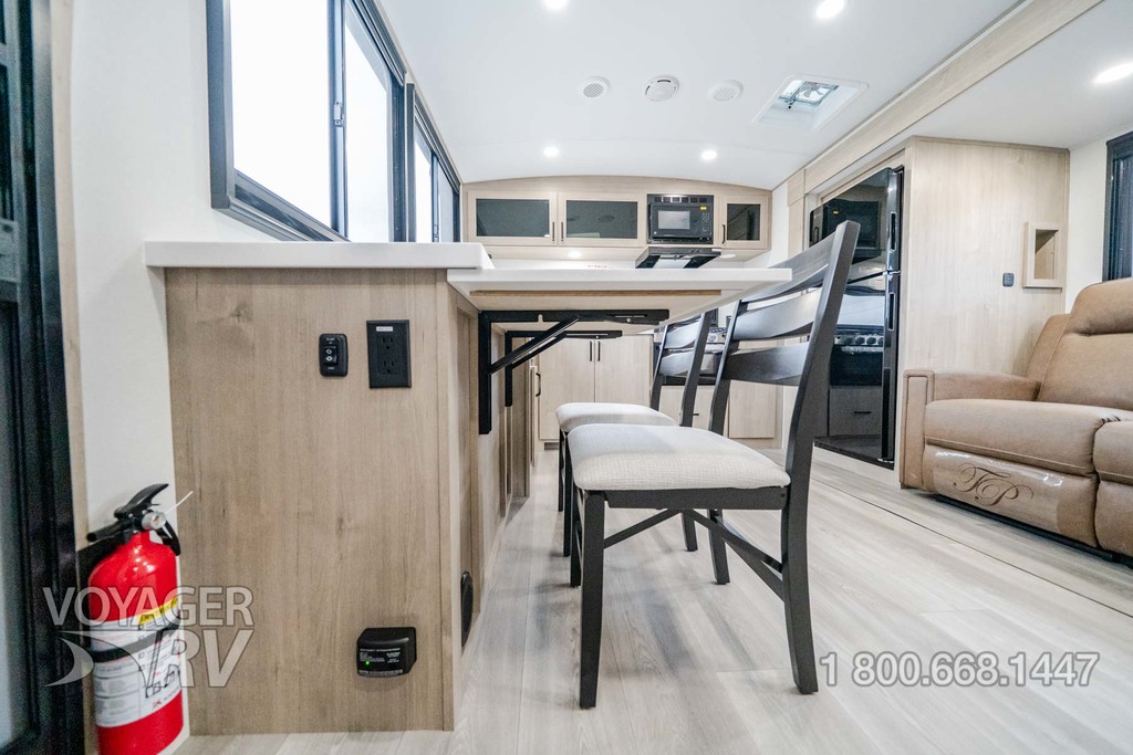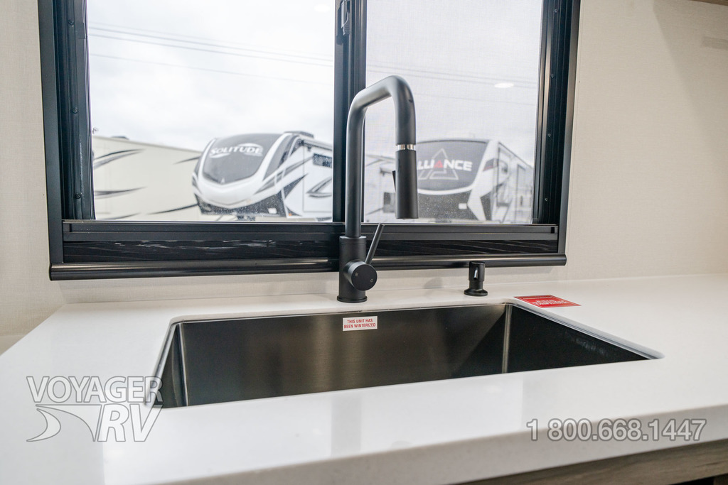 - Peace of Mind Package: Drop Frame Front Pass Thru Storage, Solid-Step Entry Step, Walk on Roof, Universal Docking Station, On-Demand Tankless Water Heater, Black Tank Flush, Aluminum Rims, Spare Tire & Carrier, Front Rock Guard, Fiberglass Front Cap, Metal Slam Latch Cargo Doors, 6’ Coiled Break Away Cable, Accessory Hitch, Sewer Hose Carrier, Tuff-Ply Pass Thru Flooring, Dual LP Tank Monitors, CRE-3000 Suspension System Paired w/Wet Bolts and Bronze Bushings, Hot/Cold Exterior Spray Port, Oversized Holding Tanks, Rear Ladder, LP Quick Connect, Key-a-Like Baggage and Entry Doors, Entry Door Privacy Shade, 7-Way Plug Chassis Bracket, Master Bed Reading Lights, Strutted Bed Base, Sliding Laundry Tray, Retractable Shower Door, Soft Close Toilet Lids, Undermounted Kitchen and Lav Sinks, Residential Pulldown Spray Faucet, Residential Cabinetry and Hardware, Soft Close Hidden Hinges, Magnetic Cabinet Door & Drawer Latches, Radius Interior Ceiling, Premium Window Treatments, Solid Surface Counter Tops, Intergraded Soap Dispenser, Rollup Kitchen Sink Cover, 3-Burner Range w/Low Profile Power Vent, Pots/Pans Drawer w/Intergraded Peg Organizers, Carpetless Floors.