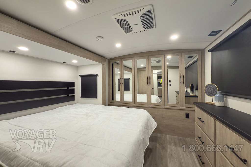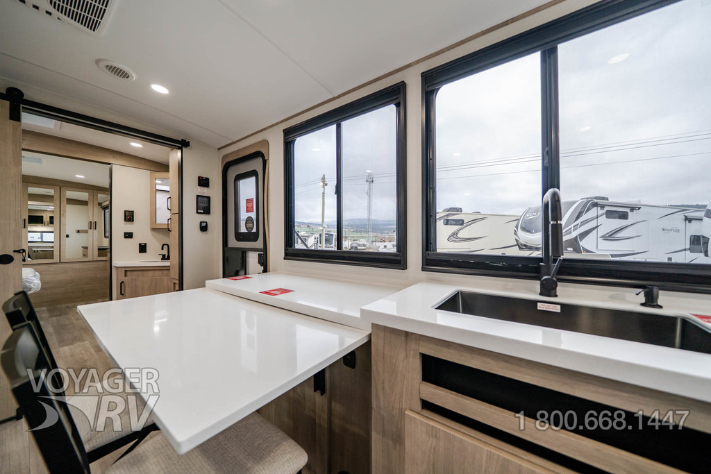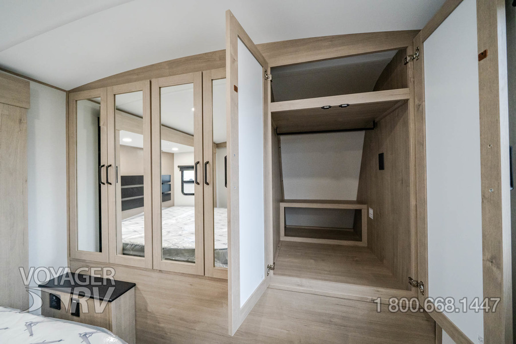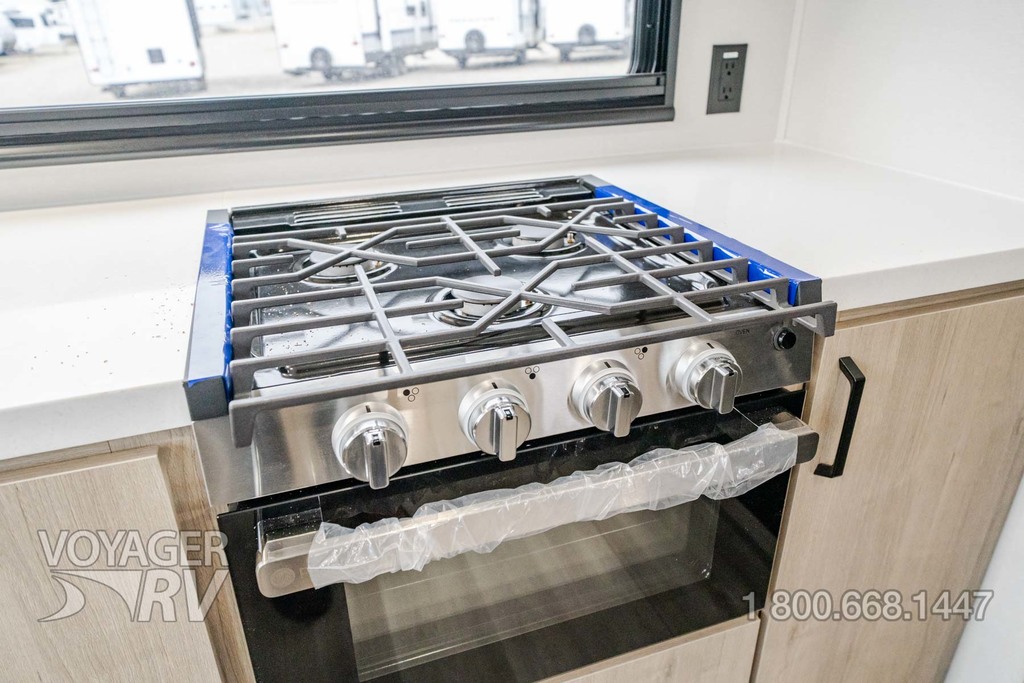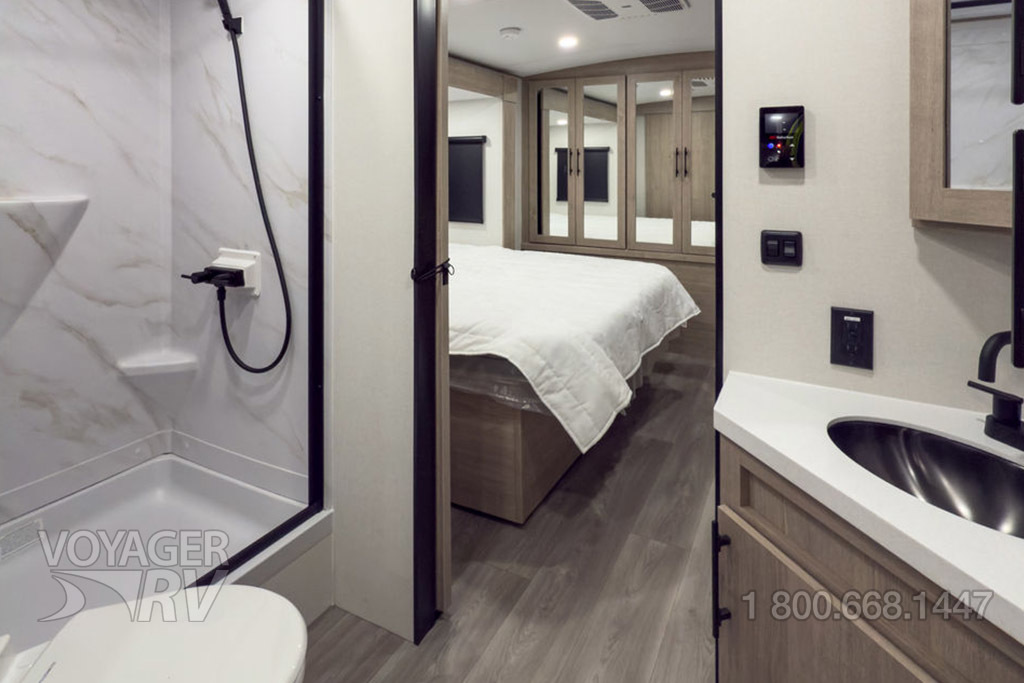 - Peace of Mind Package: Drop Frame Front Pass Thru Storage, Solid-Step Entry Step, Walk on Roof, Universal Docking Station, On-Demand Tankless Water Heater, Black Tank Flush, Aluminum Rims, Spare Tire & Carrier, Front Rock Guard, Fiberglass Front Cap, Metal Slam Latch Cargo Doors, 6’ Coiled Break Away Cable, Accessory Hitch, Sewer Hose Carrier, Tuff-Ply Pass Thru Flooring, Dual LP Tank Monitors, CRE-3000 Suspension System Paired w/Wet Bolts and Bronze Bushings, Hot/Cold Exterior Spray Port, Oversized Holding Tanks, Rear Ladder, LP Quick Connect, Key-a-Like Baggage and Entry Doors, Entry Door Privacy Shade, 7-Way Plug Chassis Bracket, Master Bed Reading Lights, Strutted Bed Base, Sliding Laundry Tray, Retractable Shower Door, Soft Close Toilet Lids, Undermounted Kitchen and Lav Sinks, Residential Pulldown Spray Faucet, Residential Cabinetry and Hardware, Soft Close Hidden Hinges, Magnetic Cabinet Door & Drawer Latches, Radius Interior Ceiling, Premium Window Treatments, Solid Surface Counter Tops, Intergraded Soap Dispenser, Rollup Kitchen Sink Cover, 3-Burner Range w/Low Profile Power Vent, Pots/Pans Drawer w/Intergraded Peg Organizers, Carpetless Floors.