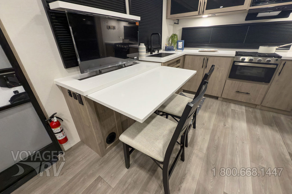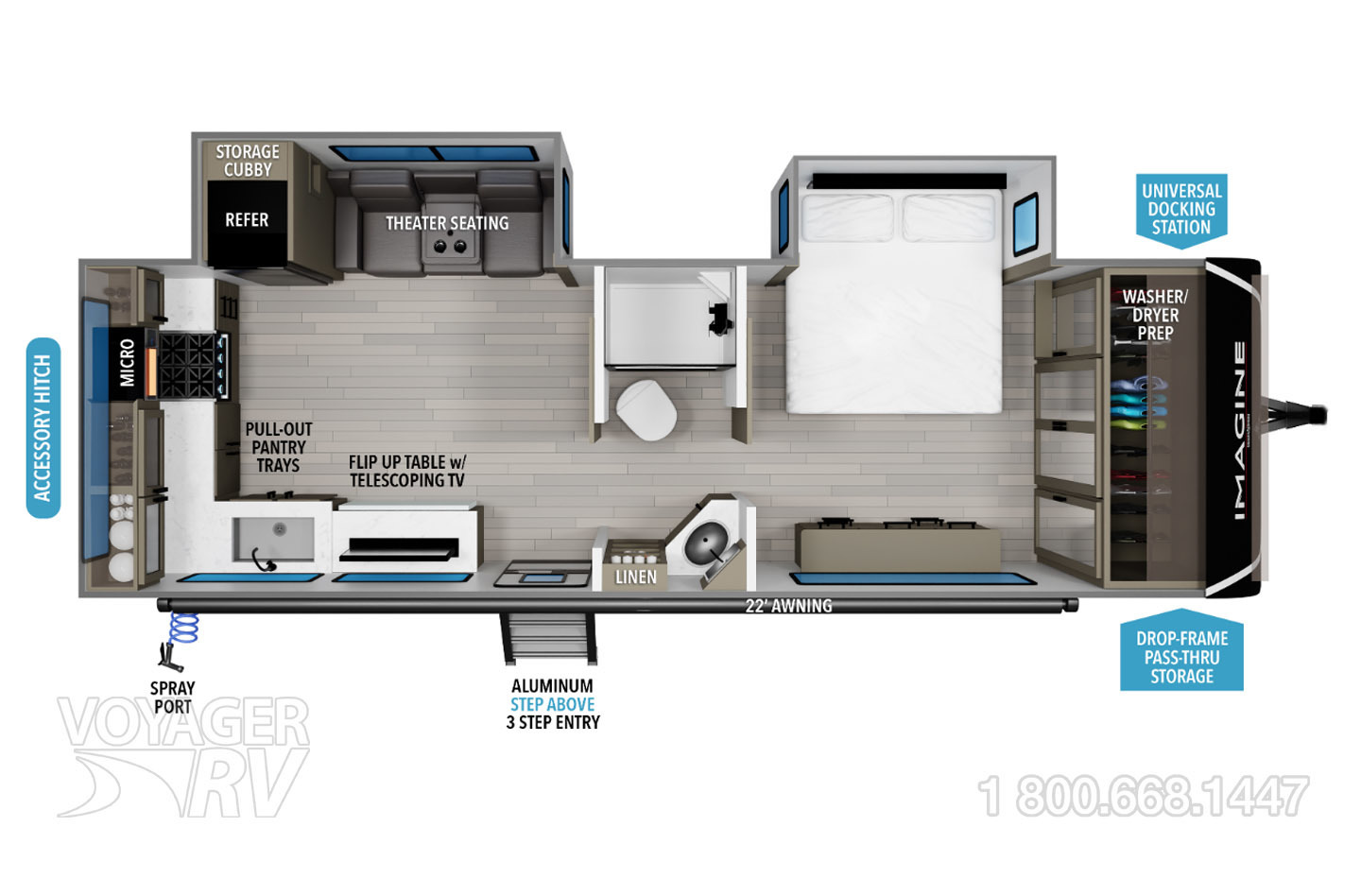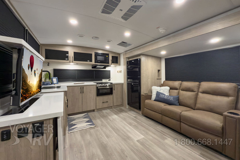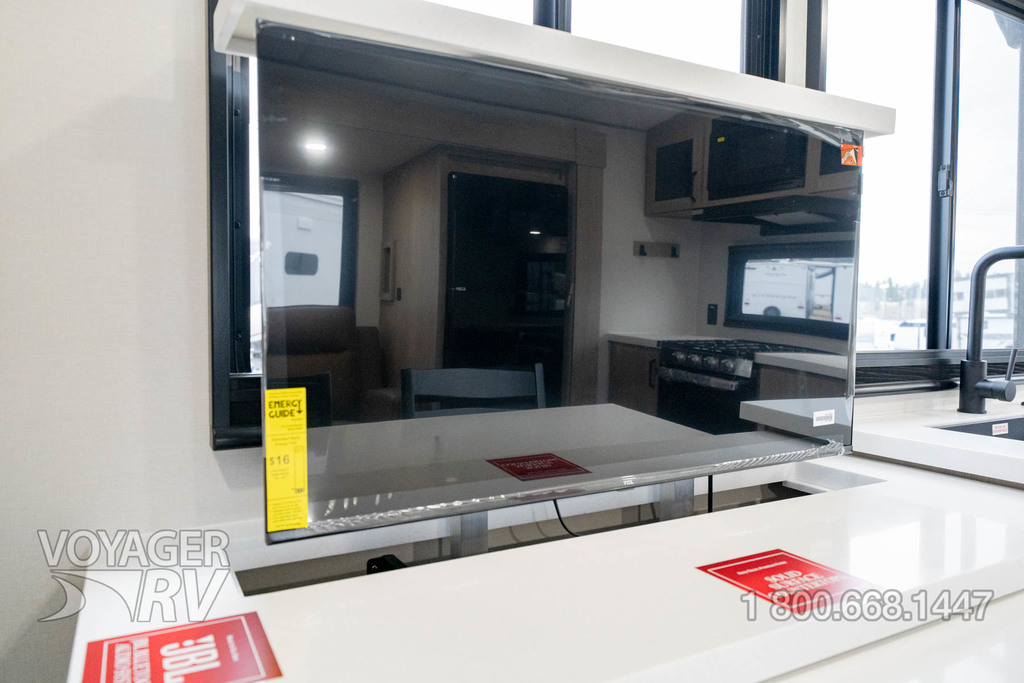 - Ultimate Power Package: Adjustable Power Awning w/LED Lights, LED Interior Lighting w/Dimming, 50 AMP Service, Hi Definition Smart LED TV, Detachable Power Cord, Ducted Main AC, Motion Sensor LED Night Light, Power Tongue Jack, Exterior Cable Hookup, Compass Connect, Tire Linc TPMS Prep, JBL Bluetooth Audio System, Inverter Prep, Backup Camera Prep, Pass-Thru Motion LED Light.