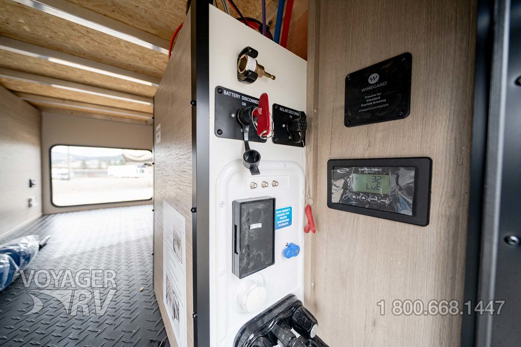 - Solar Package: 200W Roof Mounted Solar Panel, Roof Mounted Quick Connect Plugs, 30AMP Charge Controller, Solar Disconnect Switch, Battery Disconnect Switch, 12V 10CU FT Refrigerator
