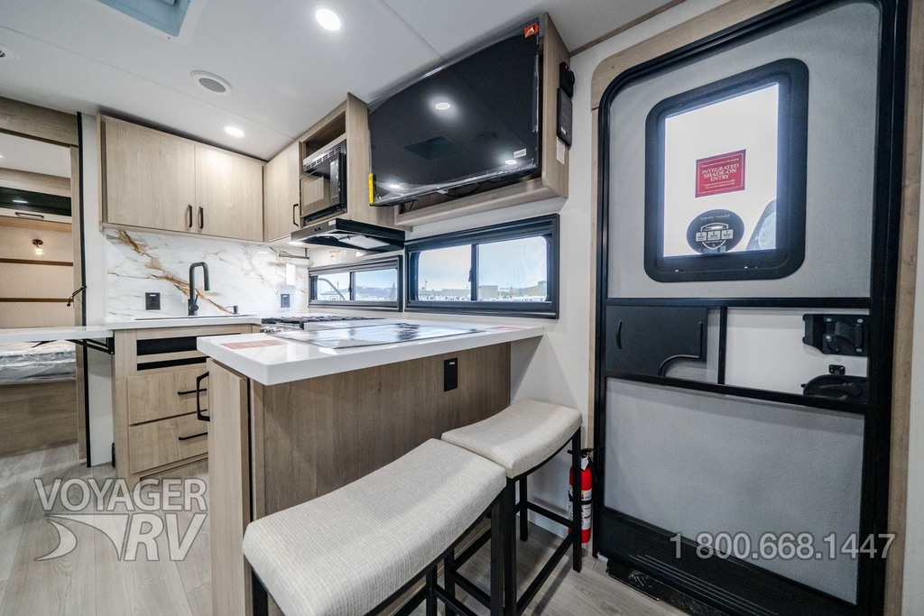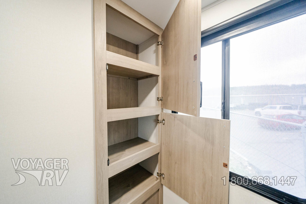 - Peace of Mind Package: Drop Frame Front Pass Thru Storage, Solid-Step Entry Step, Walk on Roof, Universal Docking Station, On-Demand Tankless Water Heater, Black Tank Flush, Aluminum Rims, Spare Tire & Carrier, Front Rock Guard, Fiberglass Front Cap, Metal Slam Latch Cargo Doors, 6’ Coiled Break Away Cable, Accessory Hitch, Sewer Hose Carrier, Tuff-Ply Pass Thru Flooring, Dual LP Tank Monitors, CRE-3000 Suspension System Paired w/Wet Bolts and Bronze Bushings, Hot/Cold Exterior Spray Port, Oversized Holding Tanks, Rear Ladder, LP Quick Connect, Key-a-Like Baggage and Entry Doors, Entry Door Privacy Shade, 7-Way Plug Chassis Bracket, Master Bed Reading Lights, Strutted Bed Base, Sliding Laundry Tray, Retractable Shower Door, Soft Close Toilet Lids, Undermounted Kitchen and Lav Sinks, Residential Pulldown Spray Faucet, Residential Cabinetry and Hardware, Soft Close Hidden Hinges, Magnetic Cabinet Door & Drawer Latches, Radius Interior Ceiling, Premium Window Treatments, Solid Surface Counter Tops, Intergraded Soap Dispenser, Rollup Kitchen Sink Cover, 3-Burner Range w/Low Profile Power Vent, Pots/Pans Drawer w/Intergraded Peg Organizers, Carpetless Floors, Paper Towel Holder, Dedicated Trash Compartment, Enhanced Plumbing System.