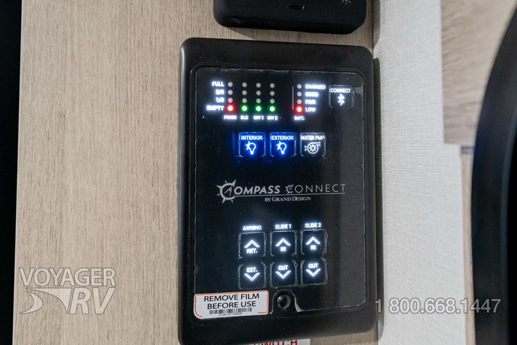 - Ultimate Power Package: Adjustable Power Awning w/LED Lights, LED Interior Lighting w/Dimming, 50 AMP Service, Hi Definition Smart LED TV, Detachable Power Cord, Ducted Main AC, Motion Sensor LED Night Light, Power Tongue Jack, Exterior Cable Hookup, Compass Connect, Tire Linc TPMS Prep, JBL Bluetooth Audio System, Inverter Prep, Backup Camera Prep, Pass-Thru Motion LED Light.