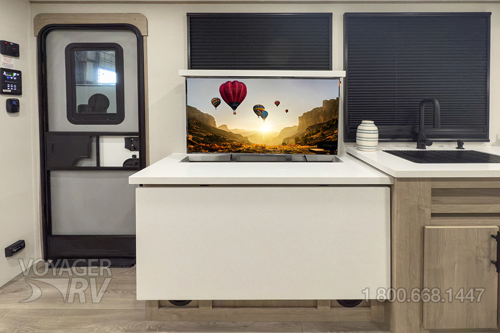 - Ultimate Power Package: Adjustable Power Awning w/LED Lights, LED Interior Lighting w/Dimming, 50 AMP Service, Hi Definition Smart LED TV, Detachable Power Cord, Ducted Main AC, Motion Sensor LED Night Light, Power Tongue Jack, Exterior Cable Hookup, Compass Connect, Tire Linc TPMS Prep, JBL Bluetooth Audio System, Inverter Prep, Backup Camera Prep, Pass-Thru Motion LED Light.