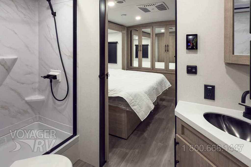 - Peace of Mind Package: Drop Frame Front Pass Thru Storage, Solid-Step Entry Step, Walk on Roof, Universal Docking Station, On-Demand Tankless Water Heater, Black Tank Flush, Aluminum Rims, Spare Tire & Carrier, Front Rock Guard, Fiberglass Front Cap, Metal Slam Latch Cargo Doors, 6’ Coiled Break Away Cable, Accessory Hitch, Sewer Hose Carrier, Tuff-Ply Pass Thru Flooring, Dual LP Tank Monitors, CRE-3000 Suspension System Paired w/Wet Bolts and Bronze Bushings, Hot/Cold Exterior Spray Port, Oversized Holding Tanks, Rear Ladder, LP Quick Connect, Key-a-Like Baggage and Entry Doors, Entry Door Privacy Shade, 7-Way Plug Chassis Bracket, Master Bed Reading Lights, Strutted Bed Base, Sliding Laundry Tray, Retractable Shower Door, Soft Close Toilet Lids, Undermounted Kitchen and Lav Sinks, Residential Pulldown Spray Faucet, Residential Cabinetry and Hardware, Soft Close Hidden Hinges, Magnetic Cabinet Door & Drawer Latches, Radius Interior Ceiling, Premium Window Treatments, Solid Surface Counter Tops, Intergraded Soap Dispenser, Rollup Kitchen Sink Cover, 3-Burner Range w/Low Profile Power Vent, Pots/Pans Drawer w/Intergraded Peg Organizers, Carpetless Floors, Paper Towel Holder, Dedicated Trash Compartment, Enhanced Plumbing System.
