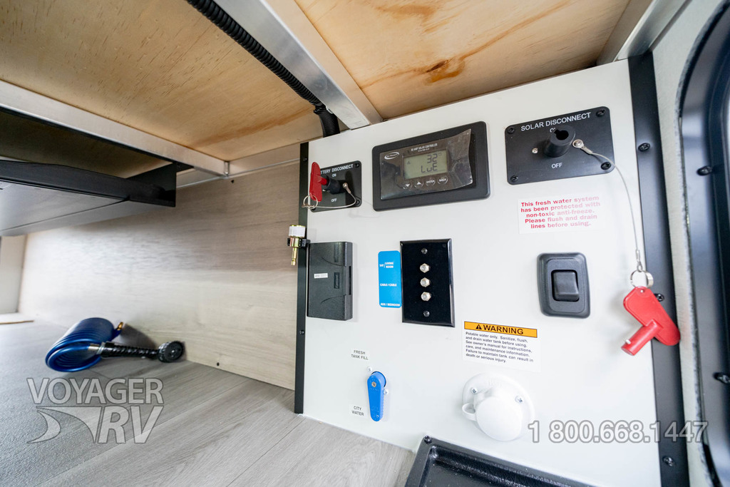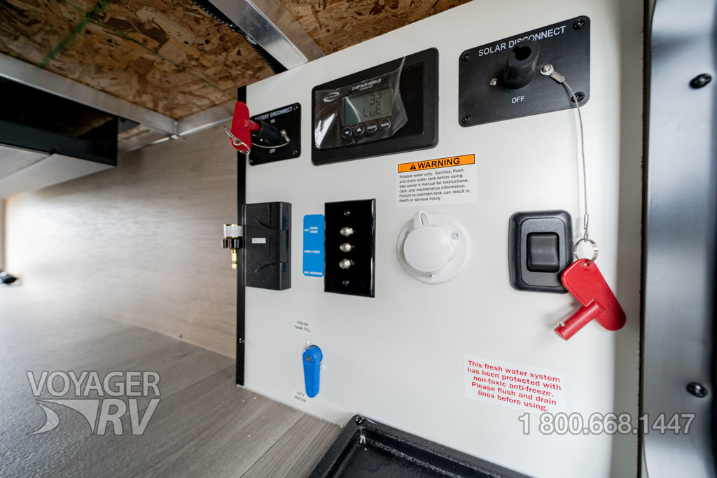 - Solar Package: 200W Roof Mounted Solar Panel, Roof Mounted Quick Connect Plugs, 30AMP Charge Controller, Solar Disconnect Switch, Battery Disconnect Switch, 12V Refrigerator.