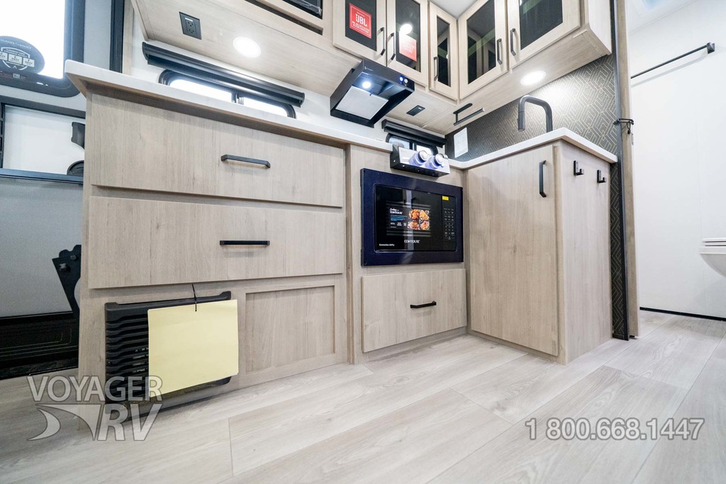 - Peace of Mind Package: Solid-Step Entry Step, Walk on Roof, Universal Docking Station, On-Demand Tankless Water Heater, Black Tank Flush, Aluminum Rims, Spare Tire & Carrier, Underslung Axel, Front Rock Guard, 6’ Coiled Break Away Cable, Accessory Hitch, Sewer Hose Carrier, Dual LP Tank Monitors, Exterior Spray Port, Oversized Holding Tanks, Rear Ladder, LP Quick Connect, Key-a-Like Baggage and Entry Doors, 7-Way Plug Chassis Bracket, Retractable Shower Door, Undermounted Kitchen & Lav Sinks, Residential Pulldown Spray Faucet, Residential Cabinetry and Hardware, Soft Close Hidden Hinges, Magnetic Cabinet Door & Drawer Latches, Premium Window Treatments, Intergraded Soap Dispenser, Rollup Kitchen Sink Cover, 2-Burner Range w/Low Profile Power Vent, Convection Microwave, Carpetless Floors, 24x48 Removeable Lifetime Table.