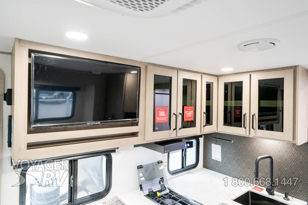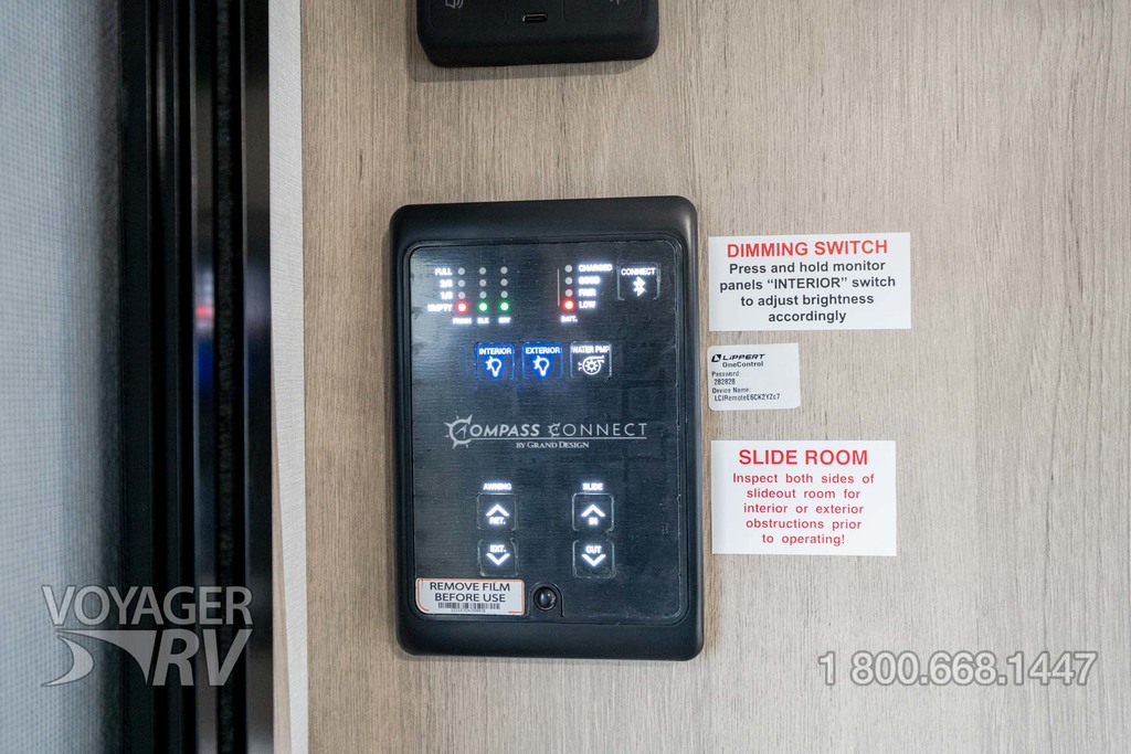 - Ultimate Power Package: Adjustable Power Awning w/LED Lights, LED Interior Lighting w/Dimming, 30 AMP Service, Hi Definition Smart LED TV, Detachable Power Cord, High Efficiency AC System, Motion Sensor LED Night Light, Power Tongue Jack, Exterior Cable Hookup, Compass Connect, Tire Linc TPMS Prep, JBL Bluetooth Audio System, Inverter Prep, Backup Camera Prep, Pass-Thru.