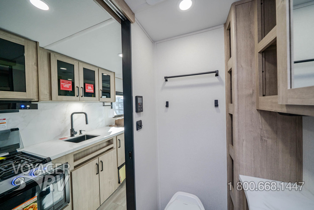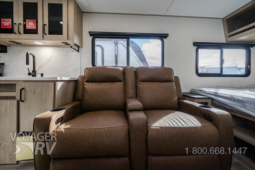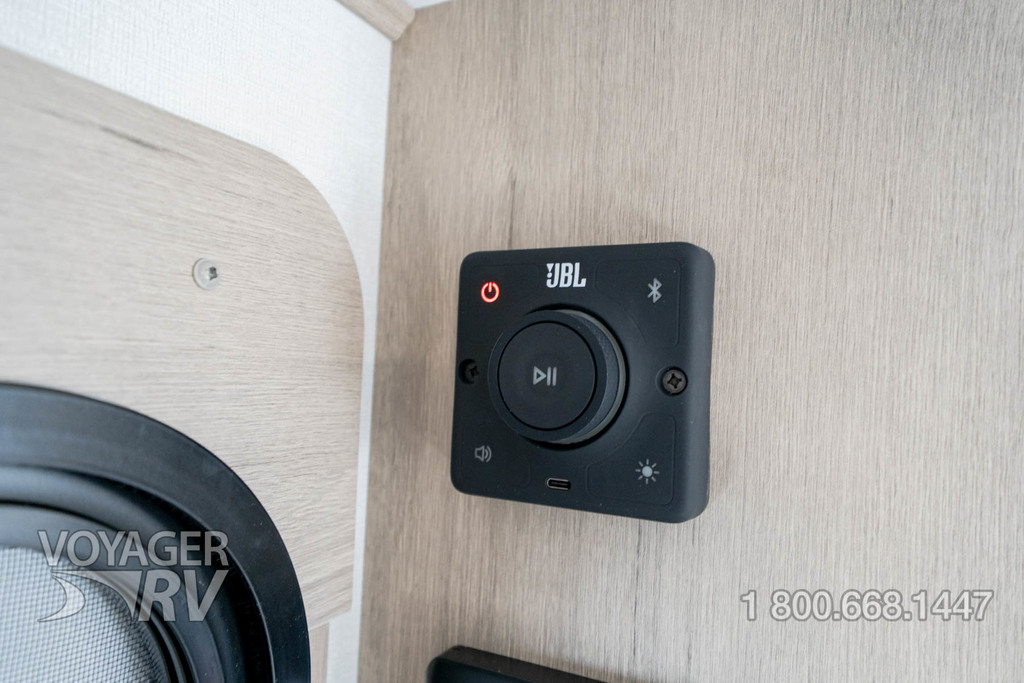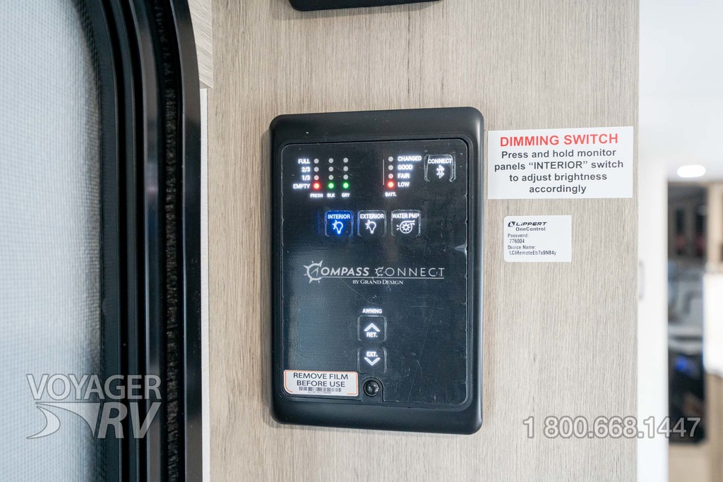 - Ultimate Power Package: Adjustable Power Awning w/LED Lights, LED Interior Lighting w/Dimming, 30 AMP Service, Hi Definition Smart LED TV, Detachable Power Cord, High Efficiency AC System, Motion Sensor LED Night Light, Power Tongue Jack, Exterior Cable Hookup, Compass Connect, Tire Linc TPMS Prep, JBL Bluetooth Audio System, Inverter Prep, Backup Camera Prep, Pass-Thru.