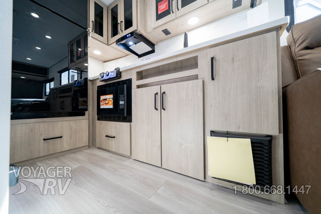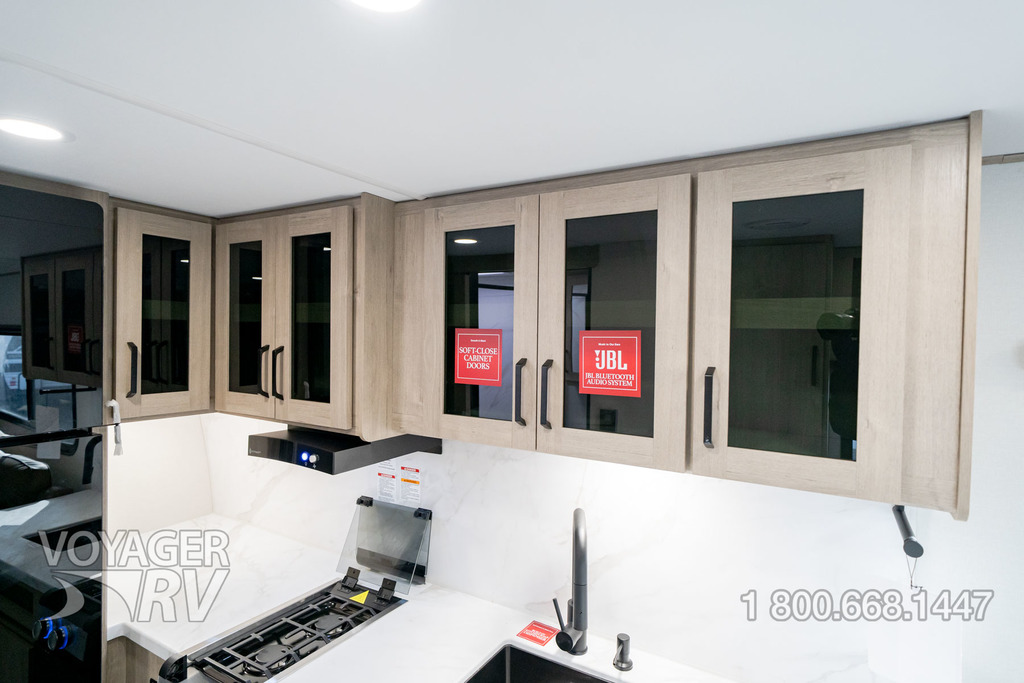 - Peace of Mind Package: Solid-Step Entry Step, Walk on Roof, Universal Docking Station, On-Demand Tankless Water Heater, Black Tank Flush, Aluminum Rims, Spare Tire & Carrier, Underslung Axel, Front Rock Guard, 6’ Coiled Break Away Cable, Accessory Hitch, Sewer Hose Carrier, Dual LP Tank Monitors, Exterior Spray Port, Oversized Holding Tanks, Rear Ladder, LP Quick Connect, Key-a-Like Baggage and Entry Doors, 7-Way Plug Chassis Bracket, Retractable Shower Door, Undermounted Kitchen & Lav Sinks, Residential Pulldown Spray Faucet, Residential Cabinetry and Hardware, Soft Close Hidden Hinges, Magnetic Cabinet Door & Drawer Latches, Premium Window Treatments, Intergraded Soap Dispenser, Rollup Kitchen Sink Cover, 2-Burner Range w/Low Profile Power Vent, Convection Microwave, Carpetless Floors, 24x48 Removeable Lifetime Table.
