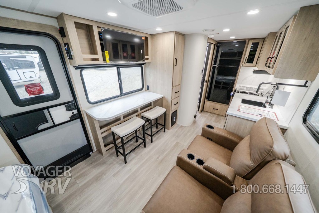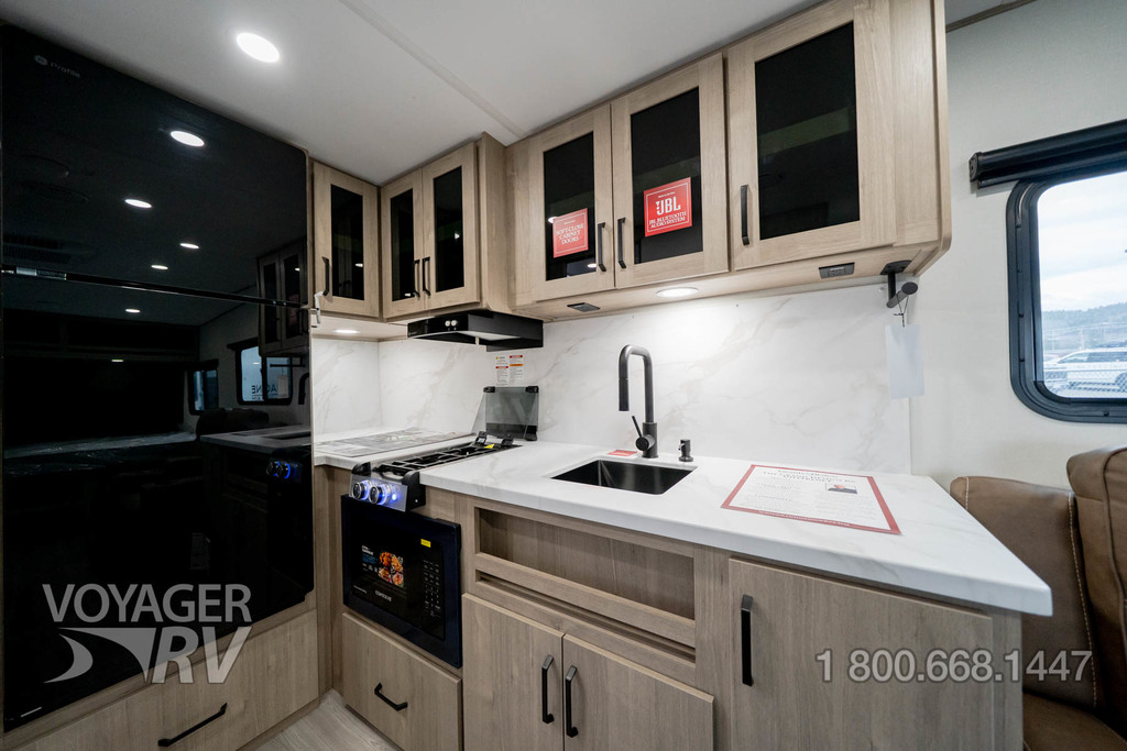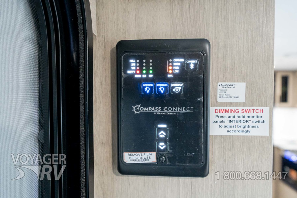 - Ultimate Power Package: Adjustable Power Awning w/LED Lights, LED Interior Lighting w/Dimming, 30 AMP Service, Hi Definition Smart LED TV, Detachable Power Cord, High Efficiency AC System, Motion Sensor LED Night Light, Power Tongue Jack, Exterior Cable Hookup, Compass Connect, Tire Linc TPMS Prep, JBL Bluetooth Audio System, Inverter Prep, Backup Camera Prep, Pass-Thru.