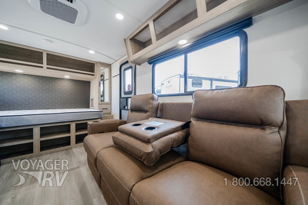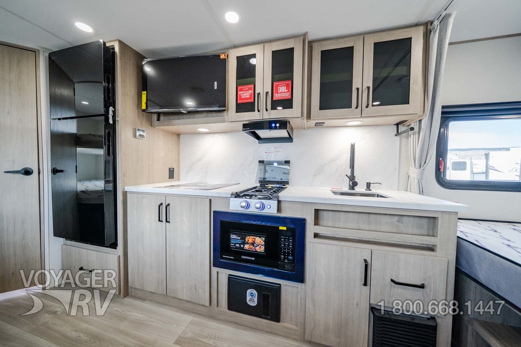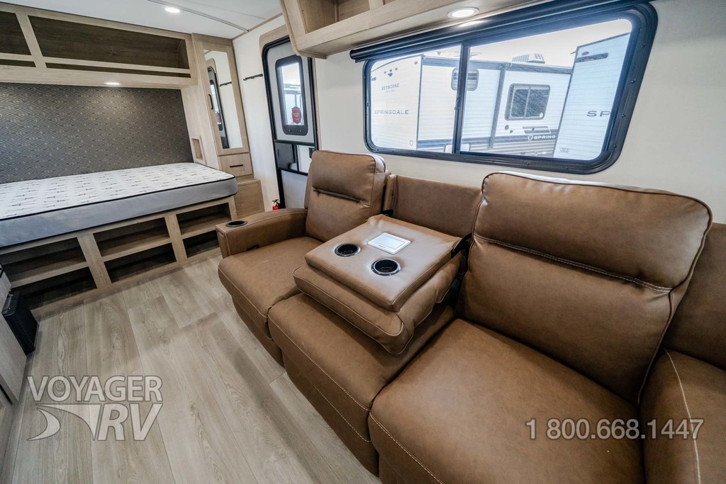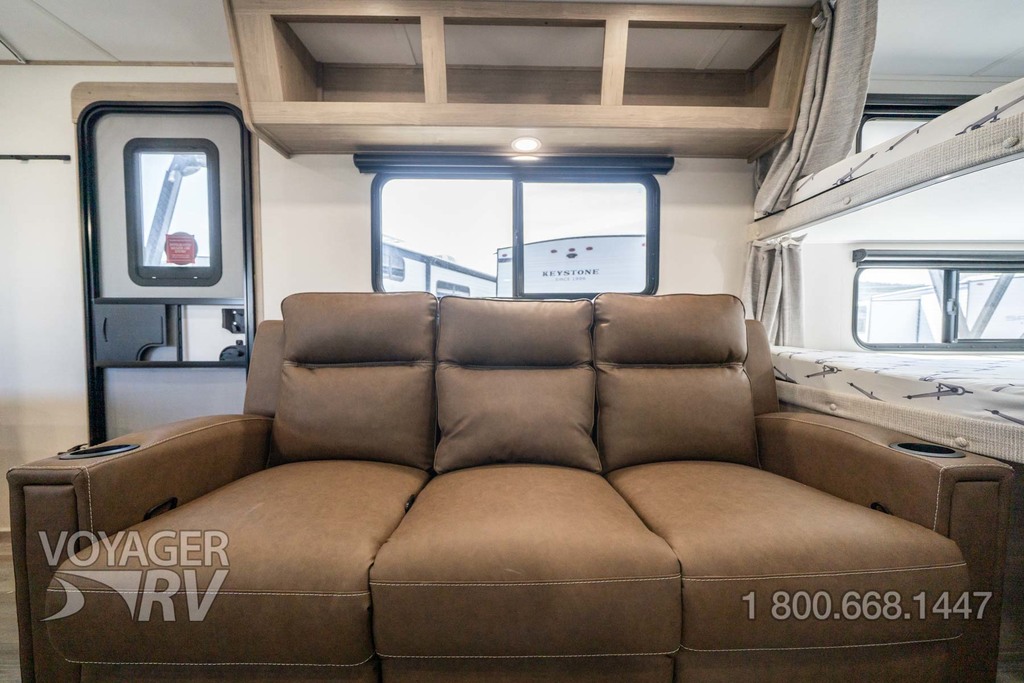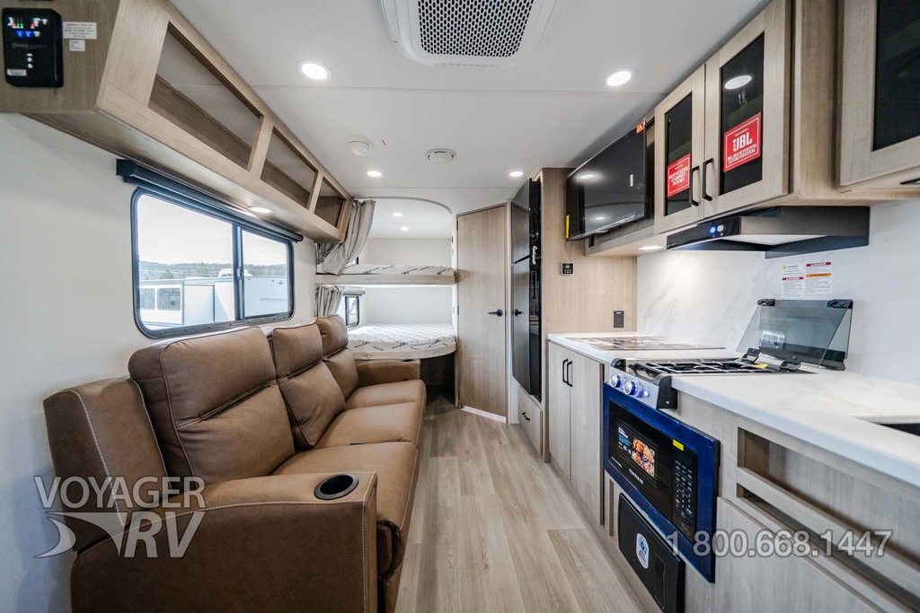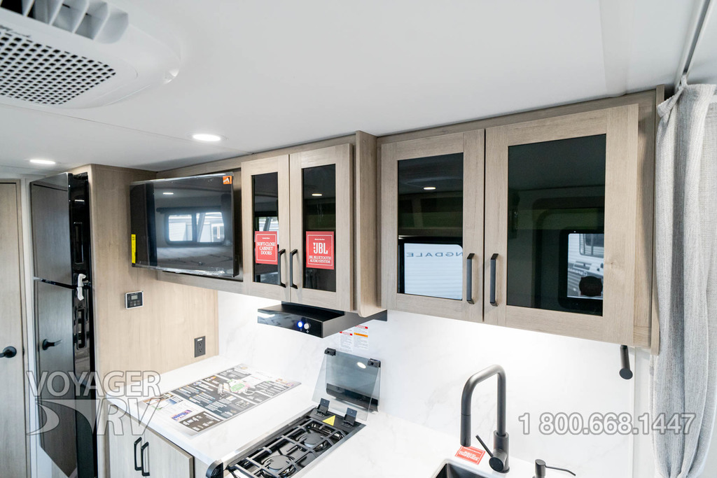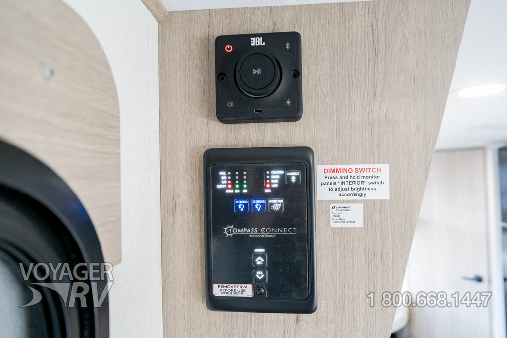 - Ultimate Power Package: Adjustable Power Awning w/LED Lights, LED Interior Lighting w/Dimming, 30 AMP Service, Hi Definition Smart LED TV, Detachable Power Cord, High Efficiency AC System, Motion Sensor LED Night Light, Power Tongue Jack, Exterior Cable Hookup, Compass Connect, Tire Linc TPMS Prep, JBL Bluetooth Audio System, Inverter Prep, Backup Camera Prep, Pass-Thru.