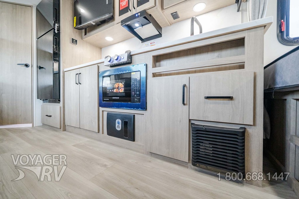 - Peace of Mind Package: Solid-Step Entry Step, Walk on Roof, Universal Docking Station, On-Demand Tankless Water Heater, Black Tank Flush, Aluminum Rims, Spare Tire & Carrier, Underslung Axel, Front Rock Guard, 6’ Coiled Break Away Cable, Accessory Hitch, Sewer Hose Carrier, Dual LP Tank Monitors, Exterior Spray Port, Oversized Holding Tanks, Rear Ladder, LP Quick Connect, Key-a-Like Baggage and Entry Doors, 7-Way Plug Chassis Bracket, Retractable Shower Door, Undermounted Kitchen & Lav Sinks, Residential Pulldown Spray Faucet, Residential Cabinetry and Hardware, Soft Close Hidden Hinges, Magnetic Cabinet Door & Drawer Latches, Premium Window Treatments, Intergraded Soap Dispenser, Rollup Kitchen Sink Cover, 2-Burner Range w/Low Profile Power Vent, Convection Microwave, Carpetless Floors, 24x48 Removeable Lifetime Table.