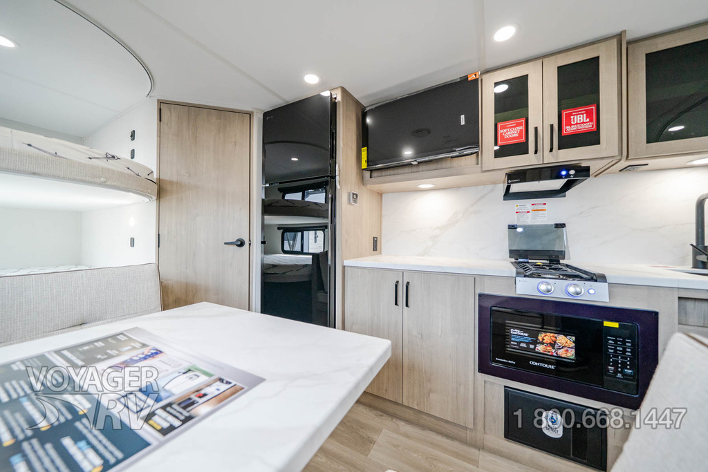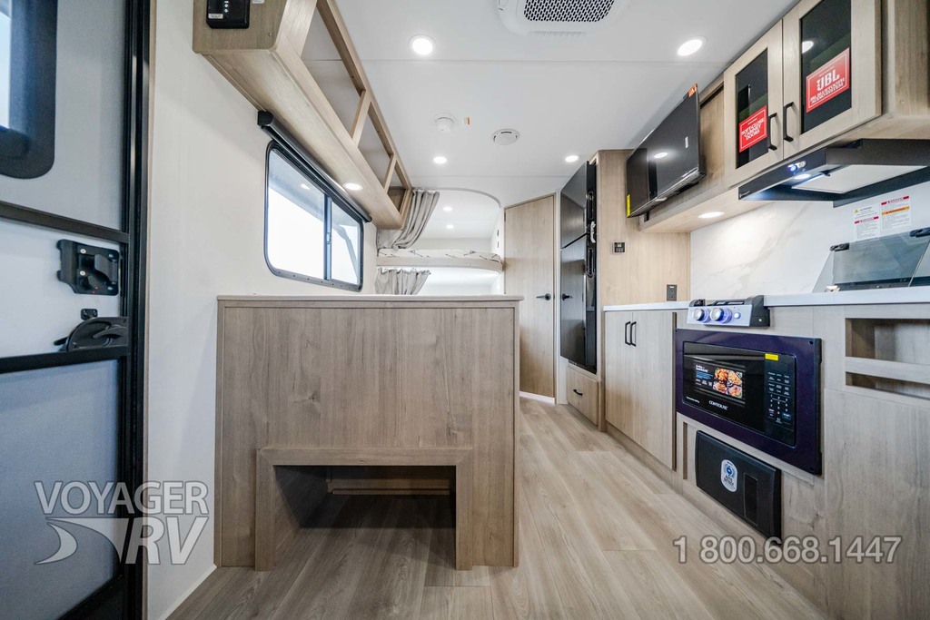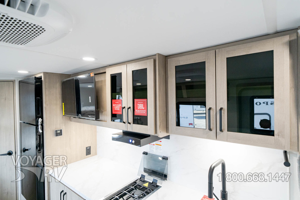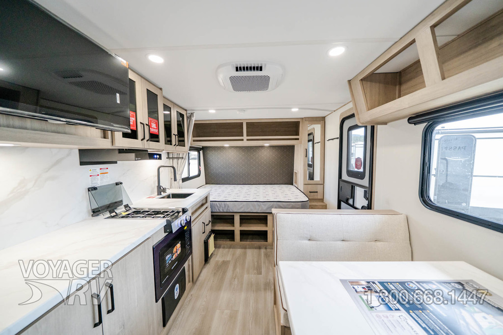 - Ultimate Power Package: Adjustable Power Awning w/LED Lights, LED Interior Lighting w/Dimming, 30 AMP Service, Hi Definition Smart LED TV, Detachable Power Cord, High Efficiency AC System, Motion Sensor LED Night Light, Power Tongue Jack, Exterior Cable Hookup, Compass Connect, Tire Linc TPMS Prep, JBL Bluetooth Audio System, Inverter Prep, Backup Camera Prep, Pass-Thru.