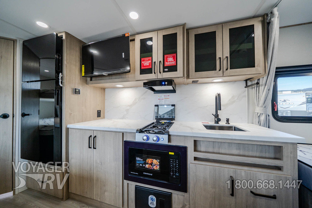 - Peace of Mind Package: Solid-Step Entry Step, Walk on Roof, Universal Docking Station, On-Demand Tankless Water Heater, Black Tank Flush, Aluminum Rims, Spare Tire & Carrier, Underslung Axel, Front Rock Guard, 6’ Coiled Break Away Cable, Accessory Hitch, Sewer Hose Carrier, Dual LP Tank Monitors, Exterior Spray Port, Oversized Holding Tanks, Rear Ladder, LP Quick Connect, Key-a-Like Baggage and Entry Doors, 7-Way Plug Chassis Bracket, Retractable Shower Door, Undermounted Kitchen & Lav Sinks, Residential Pulldown Spray Faucet, Residential Cabinetry and Hardware, Soft Close Hidden Hinges, Magnetic Cabinet Door & Drawer Latches, Premium Window Treatments, Intergraded Soap Dispenser, Rollup Kitchen Sink Cover, 2-Burner Range w/Low Profile Power Vent, Convection Microwave, Carpetless Floors, 24x48 Removeable Lifetime Table.