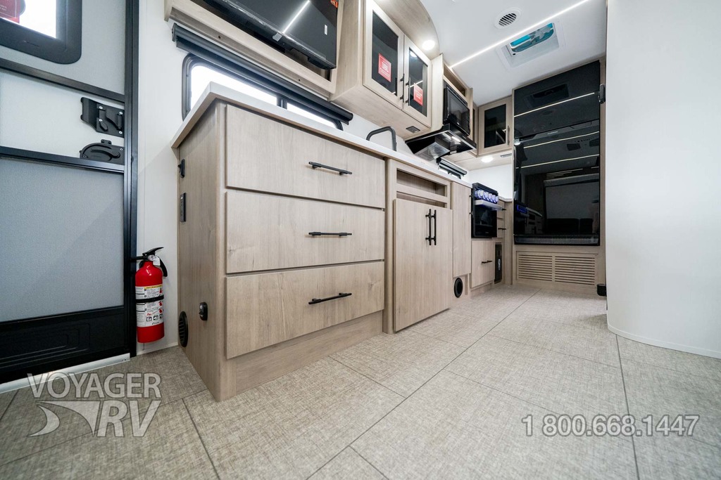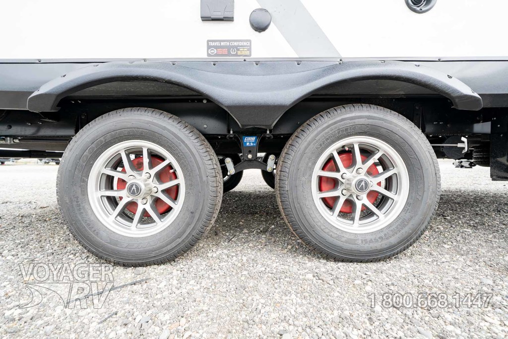 - Peace of Mind Package: Aluminum Entry Steps, Walk on Roof, Universal Docking Station, On-Demand Tankless Water Heater, Black Tank Flush, Aluminum Rims, Spare Tire & Carrier, Front Rock Guard, 6’ Coiled Break Away Cable, Accessory Hitch, Sewer Hose Carrier, Tuff-Ply Pass Thru Flooring, Dual LP Tank Monitors, Hot/Cold Exterior Spray Port, Oversized Holding Tanks, Rear Ladder, LP Quick Connect, Key-a-Like Baggage and Entry Doors, Entry Door Privacy Shade, 7-Way Plug Chassis Bracket, Master Bed Reading Lights, Strutted Bed Base, Retractable Shower Door, Soft Close Toilet Lids, Undermounted Kitchen & Lav Sinks, Residential Pulldown Spray Faucet, Residential Cabinetry and Hardware, Soft Close Hidden Hinges, Magnetic Cabinet Door & Drawer Latches, Premium Window Treatments, Intergraded Soap Dispenser, Rollup Kitchen Sink Cover, 3-Burner Range w/Low Profile Power Vent, Pots and Pans Drawer, Carpetless Floors.