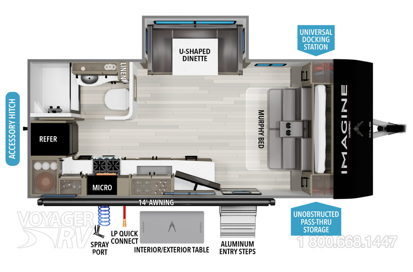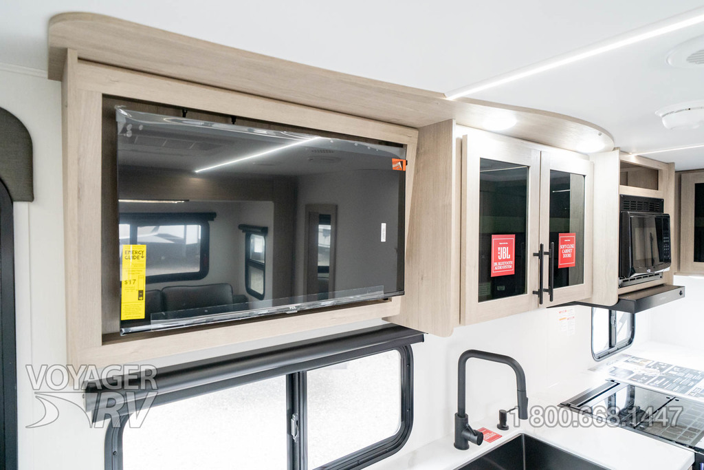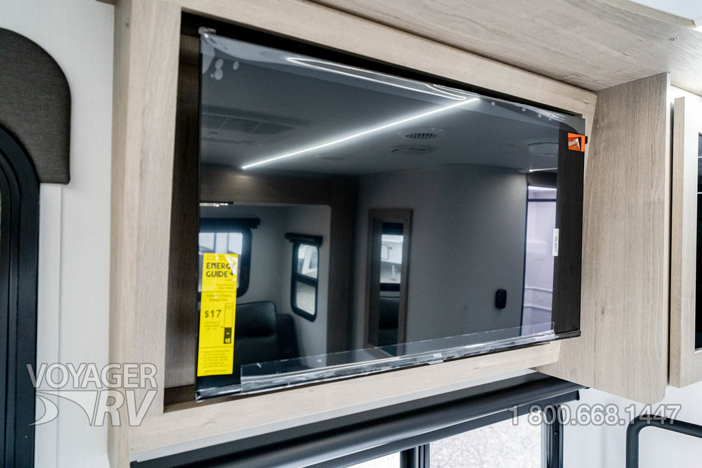 - Ultimate Power Package: Adjustable Power Awning w/LED Lights, LED Interior Lighting w/Dimming, 30 AMP Service, Hi Definition Smart LED TV, Detachable Power Cord, Ducted Main AC, Motion Sensor LED Night Light, Power Tongue Jack, Exterior Cable Hookup, Compass Connect, Tire Linc TPMS Prep, JBL Bluetooth Audio System, Inverter Prep, Backup Camera Prep, Pass-Thru Motion LED Light.