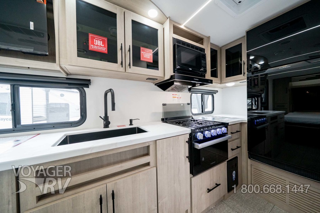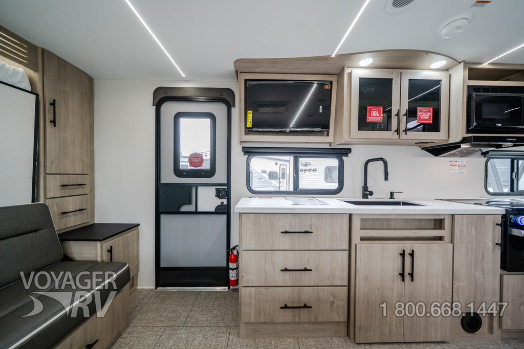 - Peace of Mind Package: Aluminum Entry Steps, Walk on Roof, Universal Docking Station, On-Demand Tankless Water Heater, Black Tank Flush, Aluminum Rims, Spare Tire & Carrier, Front Rock Guard, 6’ Coiled Break Away Cable, Accessory Hitch, Sewer Hose Carrier, Tuff-Ply Pass Thru Flooring, Dual LP Tank Monitors, Hot/Cold Exterior Spray Port, Oversized Holding Tanks, Rear Ladder, LP Quick Connect, Key-a-Like Baggage and Entry Doors, Entry Door Privacy Shade, 7-Way Plug Chassis Bracket, Master Bed Reading Lights, Strutted Bed Base, Retractable Shower Door, Soft Close Toilet Lids, Undermounted Kitchen & Lav Sinks, Residential Pulldown Spray Faucet, Residential Cabinetry and Hardware, Soft Close Hidden Hinges, Magnetic Cabinet Door & Drawer Latches, Premium Window Treatments, Intergraded Soap Dispenser, Rollup Kitchen Sink Cover, 3-Burner Range w/Low Profile Power Vent, Pots and Pans Drawer, Carpetless Floors, Paper Towel Holder, Dedicated Trash Compartment, Enhanced Plumbing System.