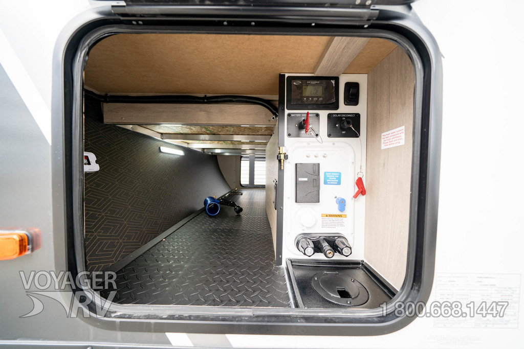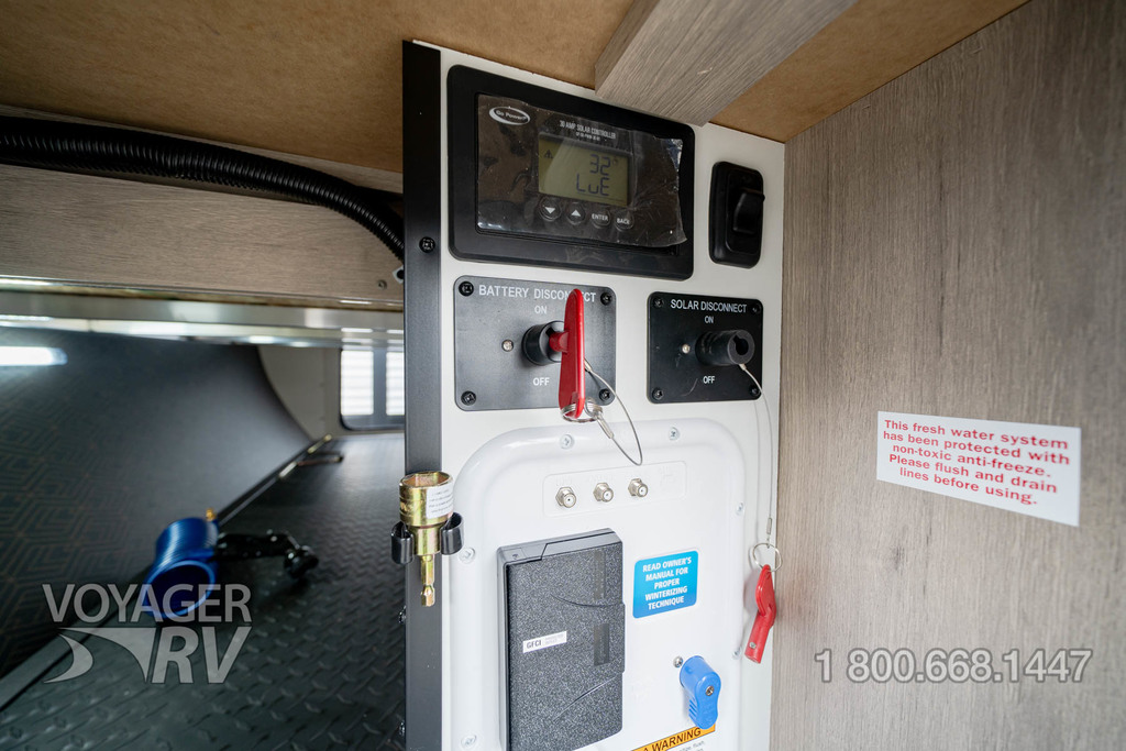- Solar Package: 200W Roof Mounted Solar Panel, Roof Mounted Quick Connect Plugs, 30AMP Charge Controller, Solar Disconnect Switch, Battery Disconnect Switch, 12V 10CU FT Refrigerator.