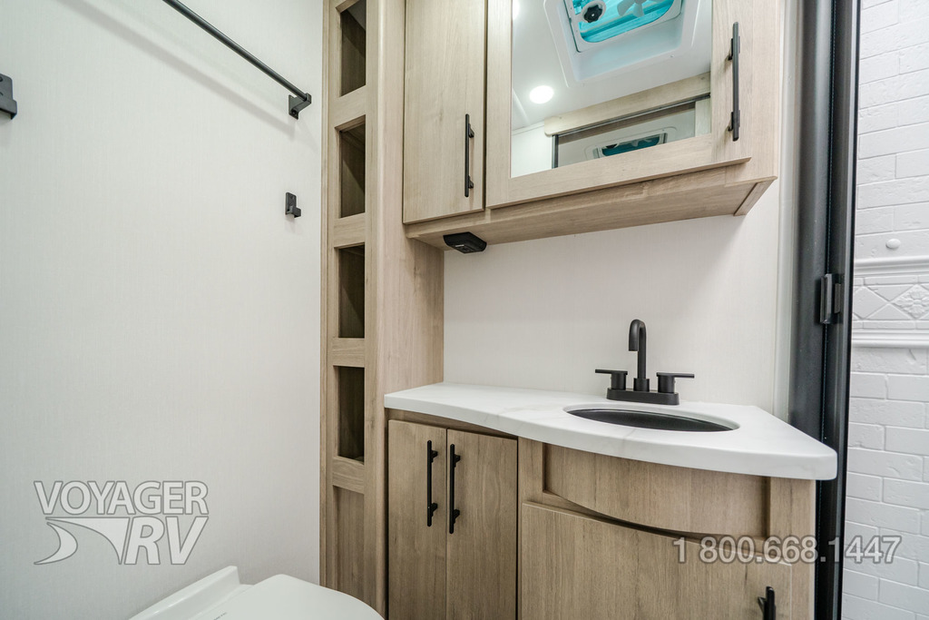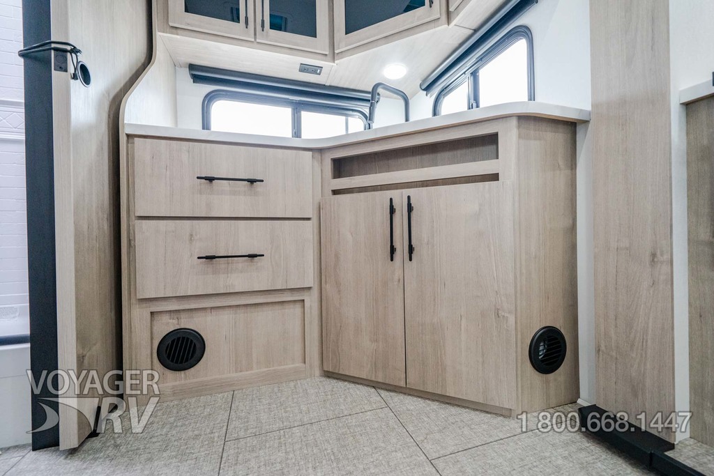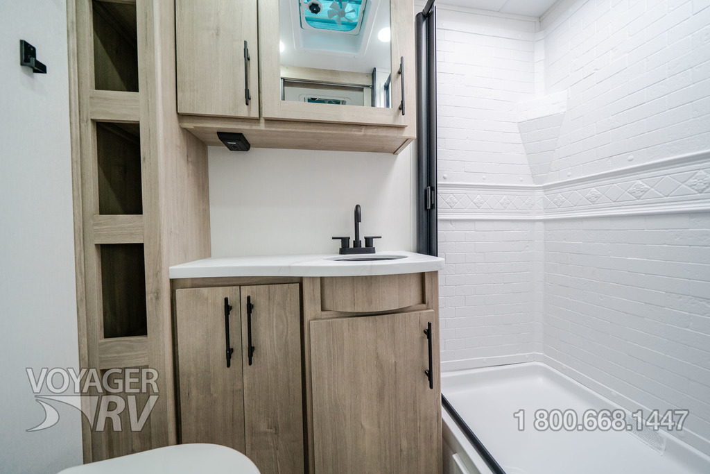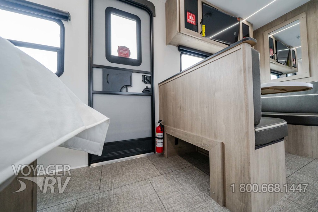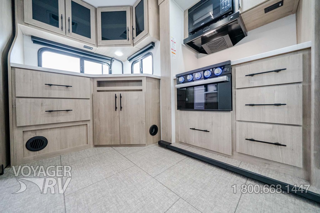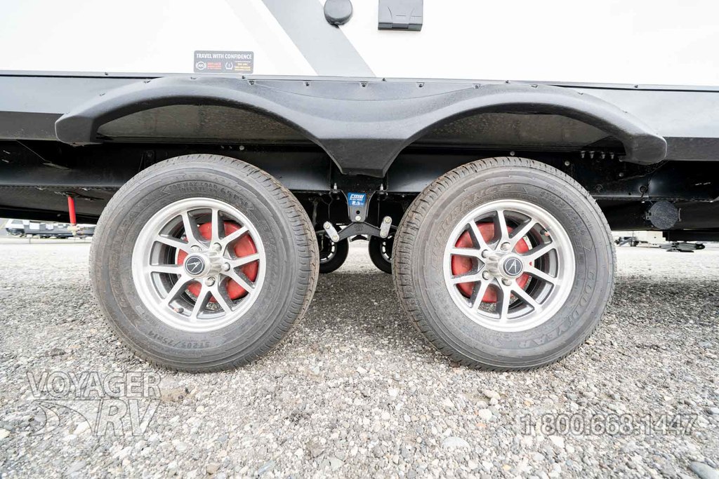 - Peace of Mind Package: Aluminum Entry Steps, Walk on Roof, Universal Docking Station, On-Demand Tankless Water Heater, Black Tank Flush, Aluminum Rims, Spare Tire & Carrier, Front Rock Guard, 6’ Coiled Break Away Cable, Accessory Hitch, Sewer Hose Carrier, Tuff-Ply Pass Thru Flooring, Dual LP Tank Monitors, Hot/Cold Exterior Spray Port, Oversized Holding Tanks, Rear Ladder, LP Quick Connect, Key-a-Like Baggage and Entry Doors, Entry Door Privacy Shade, 7-Way Plug Chassis Bracket, Master Bed Reading Lights, Strutted Bed Base, Retractable Shower Door, Soft Close Toilet Lids, Undermounted Kitchen & Lav Sinks, Residential Pulldown Spray Faucet, Residential Cabinetry and Hardware, Soft Close Hidden Hinges, Magnetic Cabinet Door & Drawer Latches, Premium Window Treatments, Intergraded Soap Dispenser, Rollup Kitchen Sink Cover, 3-Burner Range w/Low Profile Power Vent, Pots and Pans Drawer, Carpetless Floors, Paper Towel Holder, Dedicated Trash Compartment, Enhanced Plumbing System.