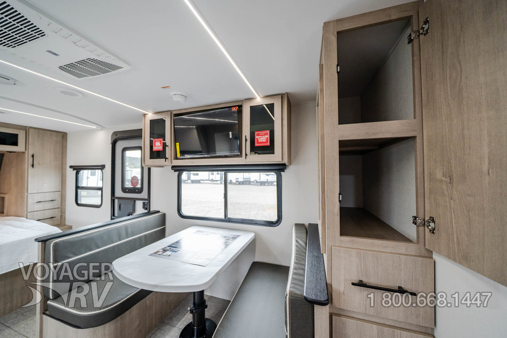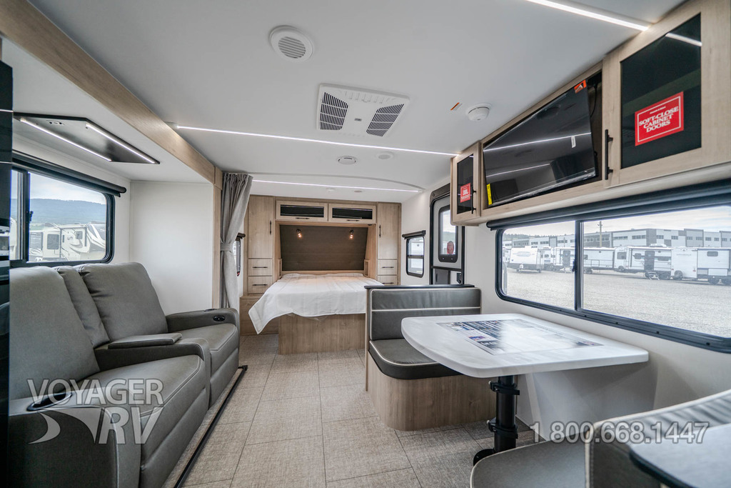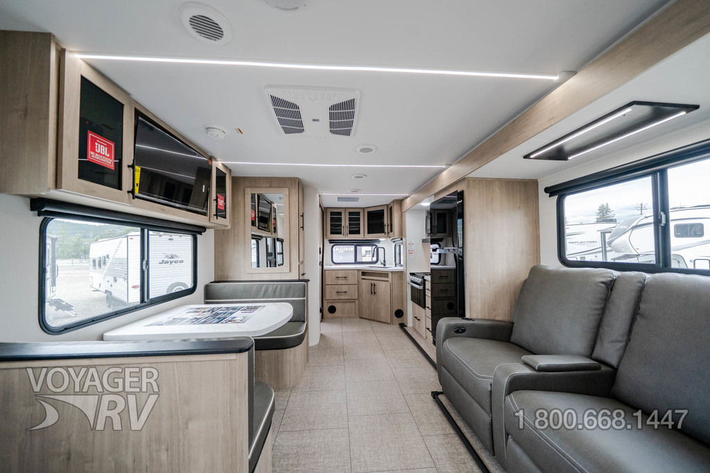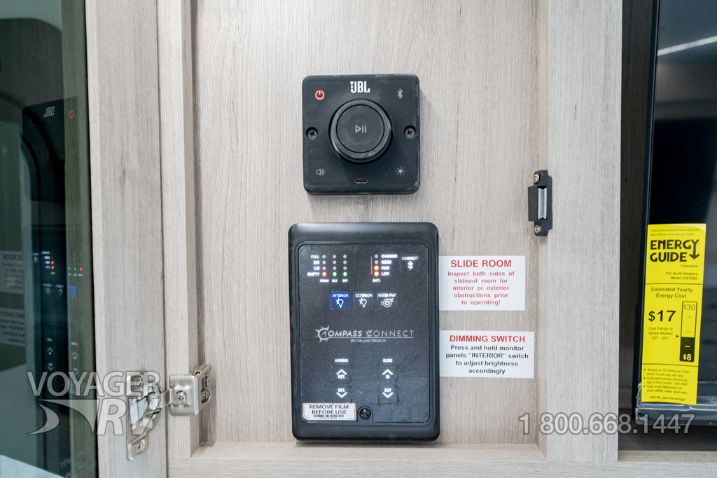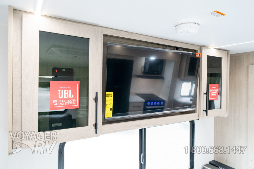 - Ultimate Power Package: Adjustable Power Awning w/LED Lights, LED Interior Lighting w/Dimming, 30 AMP Service, Hi Definition Smart LED TV, Detachable Power Cord, Ducted Main AC, Motion Sensor LED Night Light, Power Tongue Jack, Exterior Cable Hookup, Compass Connect, Tire Linc TPMS Prep, JBL Bluetooth Audio System, Inverter Prep, Backup Camera Prep, Pass-Thru Motion LED Light.